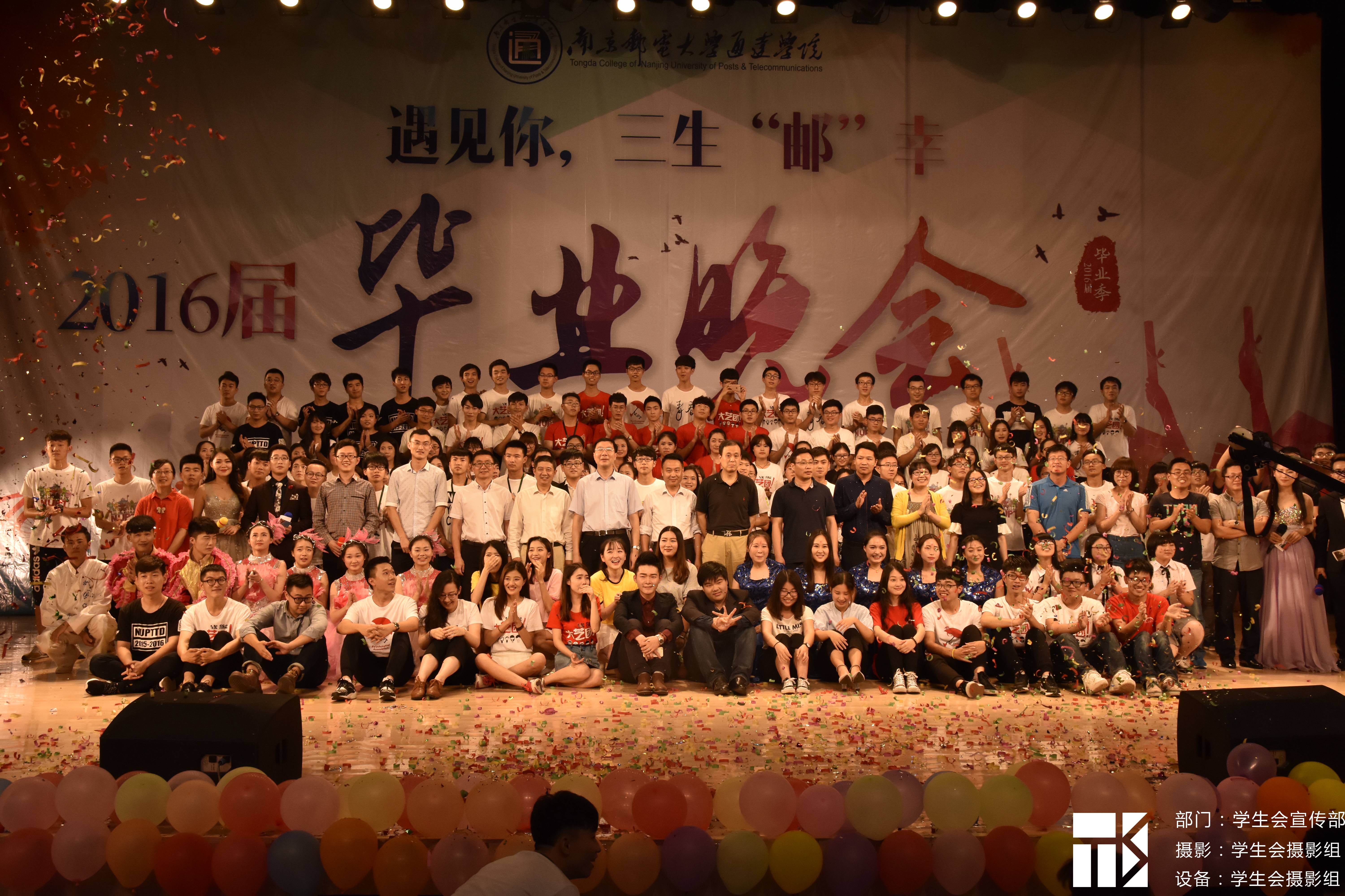 6月12日晚,由院团委主办的“遇见你,三生‘邮’幸”2016届毕业晚会在大学生活动中心礼堂举行。院长宗平、党委书记戴兆骏、常务副院长周西峰、党委副书记王立辉、扬州移动邗江分公司总经理沈振新、扬州铭扬培训服务有限公司总经理朱涛以及万象城官网各部门领导、辅导员、2016届毕业生共1200余人观看了本次晚会。