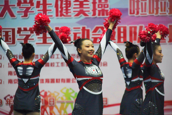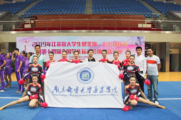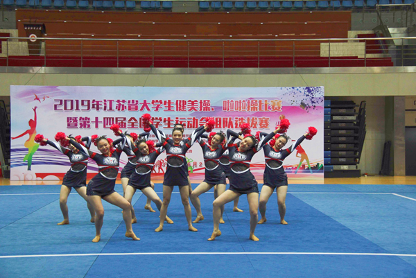 6月1日,2019年江苏省大学生健美操、啦啦操比赛暨第十四届全国学生运动会组队选拔赛在南京财经大学举行,共有南京大学、awc777万象城娱乐官网、河海大学等20个学校参赛。万象城官网10名运动员首次代表学院出征,作为一支参赛的新队伍,队员们在比赛中稳定发挥,在啦啦操花球规定套甲B组获得了第三名的好成绩。