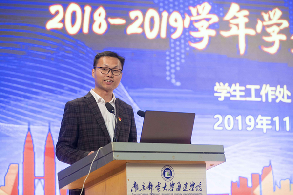 党委书记汪业周教授作了总结讲话,他充分肯定了获奖同学的学习态度和奋斗精神,并向受表彰的集体和个人表示祝贺,向辛勤付出的老师们表示崇高的敬意。汪书记向同学们提出了三点希望:一是获奖者要珍惜荣誉、保持先进,再接再厉、再创辉煌,不断取得新的更大成绩;二是发挥作为身边典型、鲜活教材的示范、带动、辐射作用,弘扬“己欲立而立人,己欲达而达人”的良好品质,使广大同学“学有榜样、做有标尺、干有方向、赶有目标”,帮助、带动同宿舍、同班级、同学院的同学一道成长、共同进步,进而在全院范围内营造出浓郁的崇尚先进、追赶先进的良好校园氛围;三是全院师生始终做到不忘初心,牢记使命,教师要把立德树人和培养电子信息领域高素质应用型人才作为自己的初心和使命,学生要把追求成才、追求成功、追求卓越和建设中国特色社会主义、实现中华民族伟大复兴的中国梦作为自己的初心和使命。最后,汪书记坚信,学院全体教职工一定能够切实践行习近平总书记提出的“有理想信念、有道德情操、有扎实学识、有仁爱之心”“四有”好老师要求,真正肩负起传播思想与真理、塑造灵魂与生命的新时代教师的神圣使命;学院全体学子,也一定能够切实践行习近平总书记提出的“树立远大理想、热爱伟大祖国、担当时代责任、勇于砥砺奋斗、练就过硬本领、锤炼品德修为”的六点要求,真正肩负起推动时代前进、担当民族复兴的新时代青年的神圣使命!
