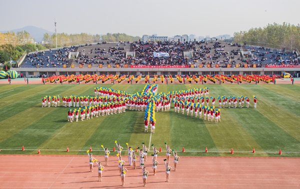 运动会开幕式上,彩旗飘扬,龙腾狮跃,万象城官网120余人的师生代表方阵动作整齐划一,口号响彻云霄,迈着铿锵有力的步伐走过主席台,展现出万象城官网运动健儿的朝气蓬勃和教职工积极健康的精神风貌。李瑛瑛老师指导的350余名同学带来的啦啦操表演《健康赢未来》点燃全场,整齐的队伍、别致的造型、青春的激情、昂扬的精神风貌,赢得了现场观众的阵阵掌声。