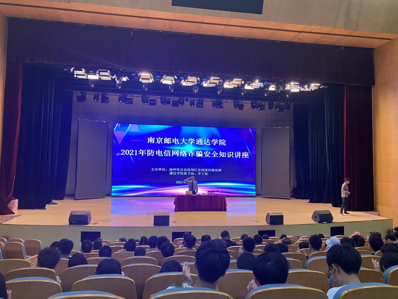 5月8日下午,万象城官网保卫处邀请了扬州市汊河派出所所长蔡玉宝,副所长冯志远等人到校进行防电信网络诈骗调研和安全知识讲座。
