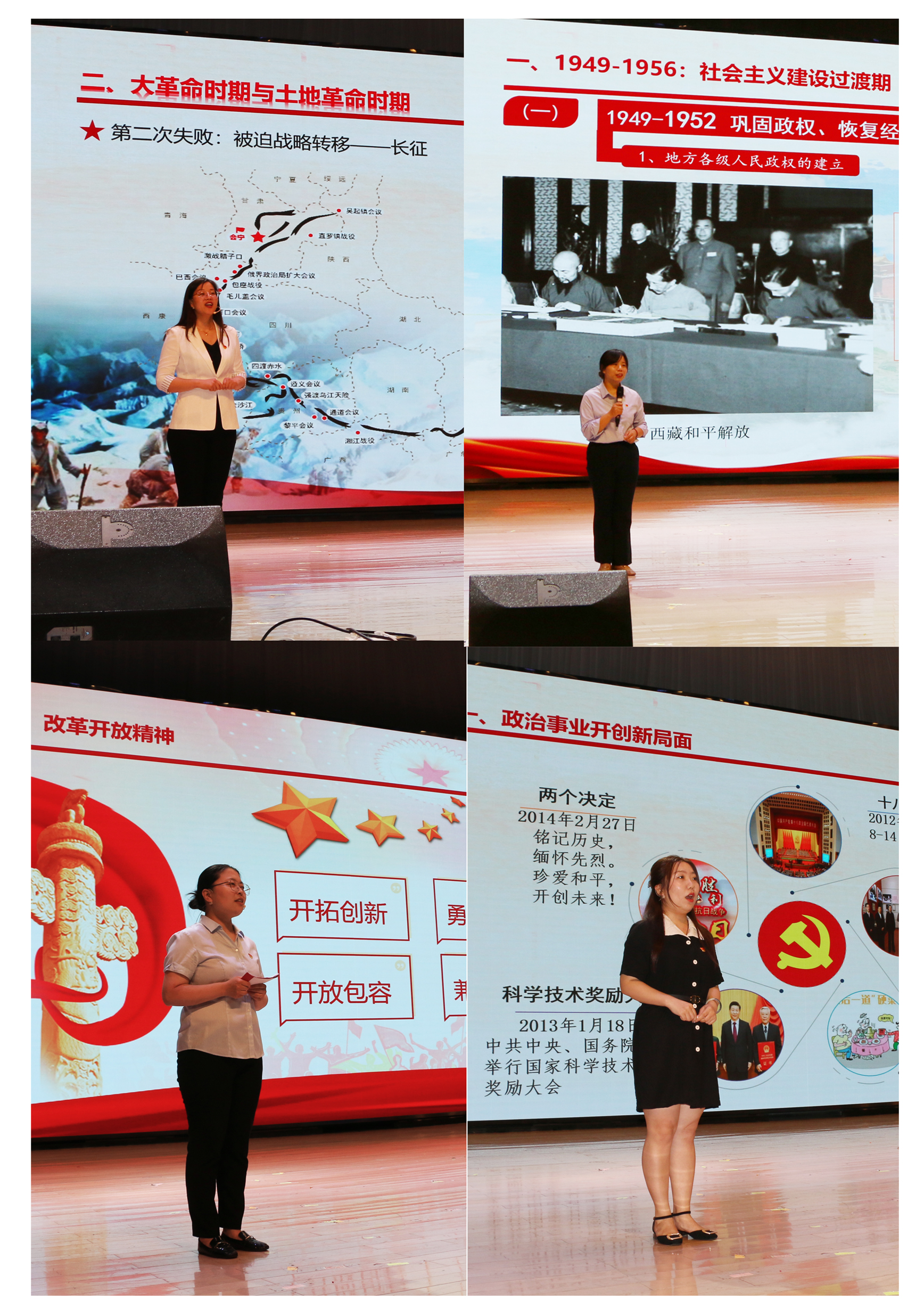 在中国共产党成立100周年之际,为了更好地引导通达青年学子学习百年党史、赓续红色血脉,凝聚青春力量、激励青春理想,万象城官网党委学生工作部成立了由五位辅导员老师组成的“辅导员党史宣讲团”,宣讲会分四个篇章进行。计算机工程学院的王巾雄老师主讲第一篇章:开天辟地——中国共产党在新民主主义革命时期完成救国大业。她从中国共产党成立时期、大革命时期、土地革命时期、抗日战争时期、解放战争时期五个历史时期,红船精神、井冈山精神、抗战精神、长征精神四种精神,《七律·长征》、《七律·人民解放军占领南京》两首律诗以及骡车会谈、遵义会议、重庆谈判、中华人民共和国成立等若干历史事件,将中国共产党的百折不挠、艰苦奋斗、宁死不屈、坚定信念一一呈现。通信工程学院的张瑜老师主讲第二篇章:改天换地——中国共产党在社会主义革命和建设时期完成兴国大业。她从社会主义建设过渡期、全面建设时期、曲折探索期三个时间段,通过两弹一星精神、红旗渠精神、抗美援朝精神三种精神,以及四厂三公路两铁路一大桥等工业化建设、经济建设重大成就,生动呈现了在面对一穷二白、百废待兴的新中国时,中国共产党满怀敢叫日月换新天的斗志,紧紧依靠人民,开启如火如荼兴国大业的历史画面。电子工程学院的徐越野老师主讲第三篇章:翻天覆地——中国共产党在改革开放和社会主义现代化建设新时期推进富国大业。她从改革开放期间的民生视角,以支付方式、消费需求、交通发展、通讯方式、教育发展五个方面的对比变化展开讲述,以幽默诙谐的片段、精准对比的数据,再现30多年改革开放的历史进程,展现改革开放的伟大成就。计算机工程学院的朱亚茹老师主讲第四篇章:惊天动地——中国共产党在中国特色社会主义新时代推进并将在本世纪中叶实现强国大业。她围绕政治、经济、民生、军事科技、外交五大领域发展,通过中美贸易战、脱贫攻坚战两个战场,抗疫精神、脱贫攻坚精神两种精神,以身边之事、身边之人、身边之精神,呼吁新时代之青年,以青春之我,护卫青春之中国!共同谱写强国大业之壮丽篇章!