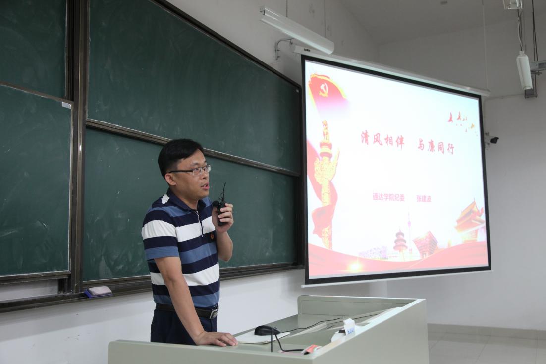 院纪委书记张建波以“清风相伴 与廉同行”为题,为即将离校的毕业生党员上了一节生动特殊的党课。张书记对廉洁的内涵、大学生廉洁教育的重要性以及十八大以来中国的廉政实践进行了解读。他对毕业生党员提出三点要求和希望:一是学思践悟,坚定理想信念;二是砥砺奋进,彰显青春榜样;三是廉洁自律,写好人生答卷。他强调,全体毕业生党员要始终牢记入党初心,严守党员标准,提升政治素养,永葆党员本色,带着大学四年的收获,带着学院党组织对大家的信任和培养,努力在这个大有可为的时代大有作为。