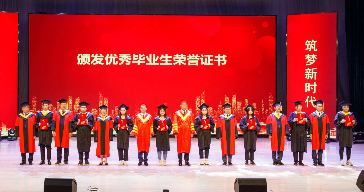 毕业典礼开始前,诗朗诵《红旗下的青春》让大家重温了党的百年历史,回顾了党带领全国各族人民从南湖红船出发,到成立中华人民共和国,从改革开放到中国特色社会主义迈进新时代砥砺奋进的光辉历程,展现了党为人民谋福祉,为民族谋复兴的初心使命。