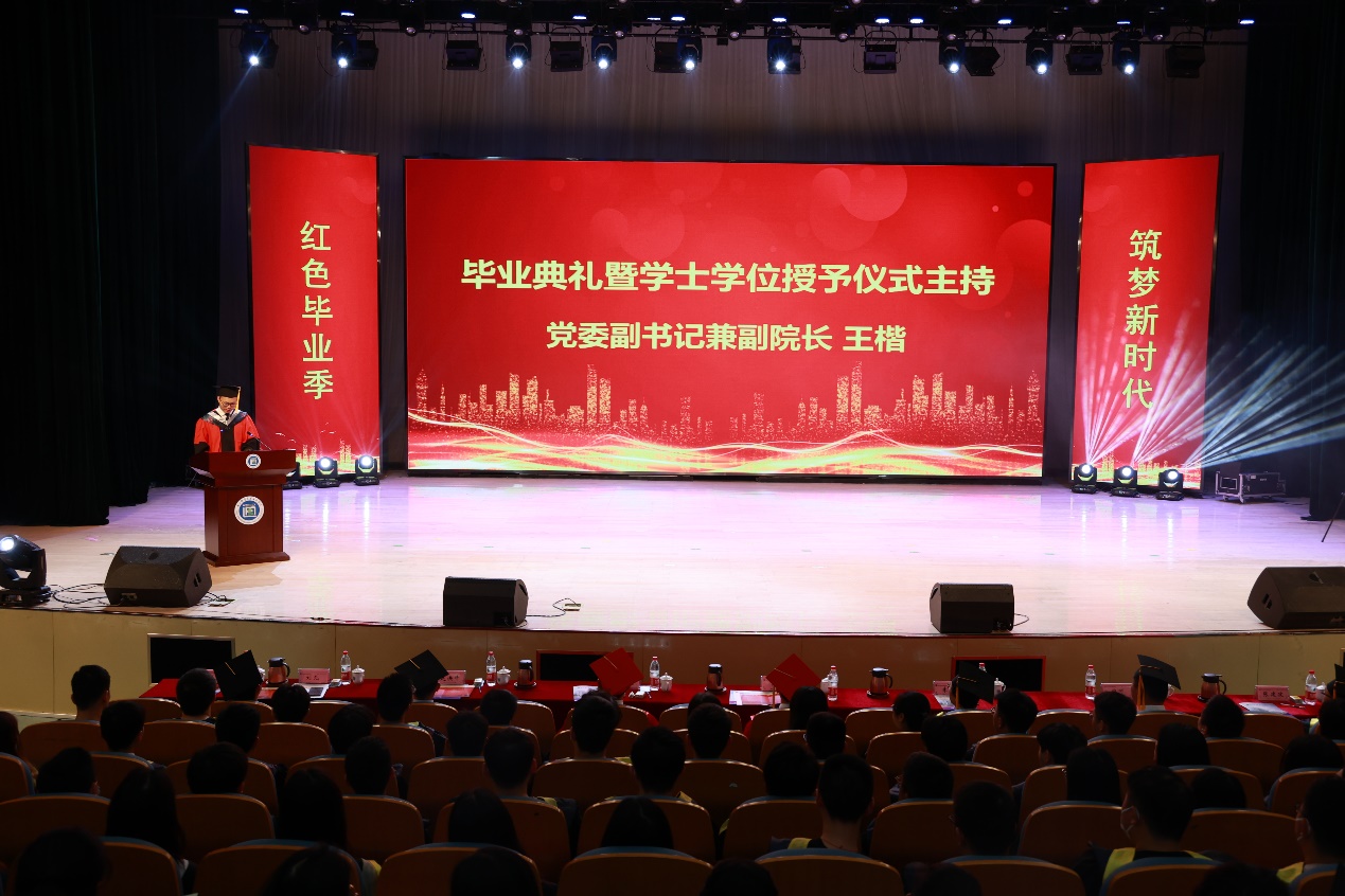 六月芳华,通达骊歌,又是一年毕业季。6月22日上午,“红色毕业季 筑梦新时代”——2021届本科生毕业典礼暨学位授予仪式在万象城官网大学生活动中心礼堂隆重举行。awc777万象城娱乐官网党委常委、副校长荆晅教授,全体院领导出席典礼。各职能部门和二级学院负责人、2021届毕业生、家长代表、教师代表和宿舍管理员代表等参加了典礼。毕业典礼由党委副书记兼副院长王楷主持。