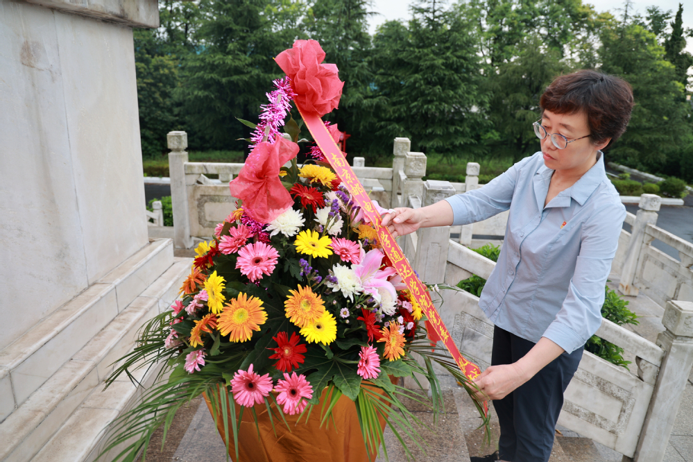 院党委理论学习中心组一行,首先来到郭村保卫战纪念碑前瞻仰烈士,党委副书记王楷和纪委书记张建波庄重地献上“革命先烈永垂不朽,awc777万象城娱乐官网敬献”字样的花篮,朱清书记神情肃穆,沿台阶缓步上前,仔细整理花篮绶带。全体人员向革命先烈三鞠躬,对郭村保卫战烈士用生命凝结的“铁军精神”致以崇高敬仰。随后,朱清书记带领中心组成员共同重温了入党誓词。面对鲜红的党旗,全体同志整齐列队,举起右拳,庄严宣誓。铿锵有力的宣誓,许下了对党和人民的庄严承诺,表达出庚续红色血脉,发扬光荣传统,坚定为党的事业奋斗终身的决心。