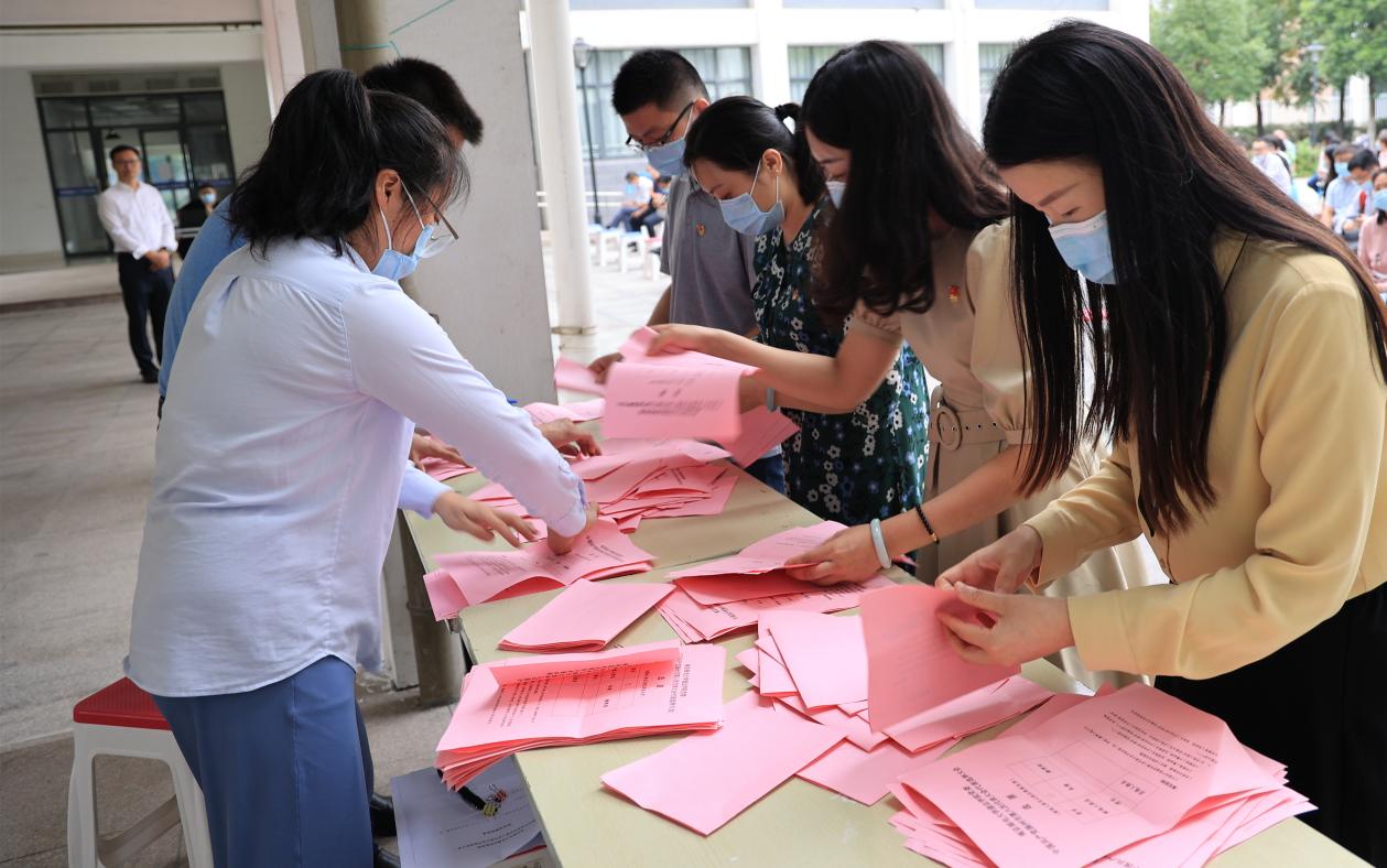 王楷首先介绍了学院出席市第八次党代会代表的名额、构成比例,酝酿产生院出席市第八次党代会代表候选人的情况,宣读了市委《关于同意出席市第八次代表大会代表候选人预备人选和名单的批复》(预〔2021〕35号)。正式党员表决通过了院出席市第八次党代会代表候选人预备人选、《中共awc777万象城娱乐官网委员会选举出席中国共产党扬州市第八次代表大会代表的办法(草案)》和监票人选。