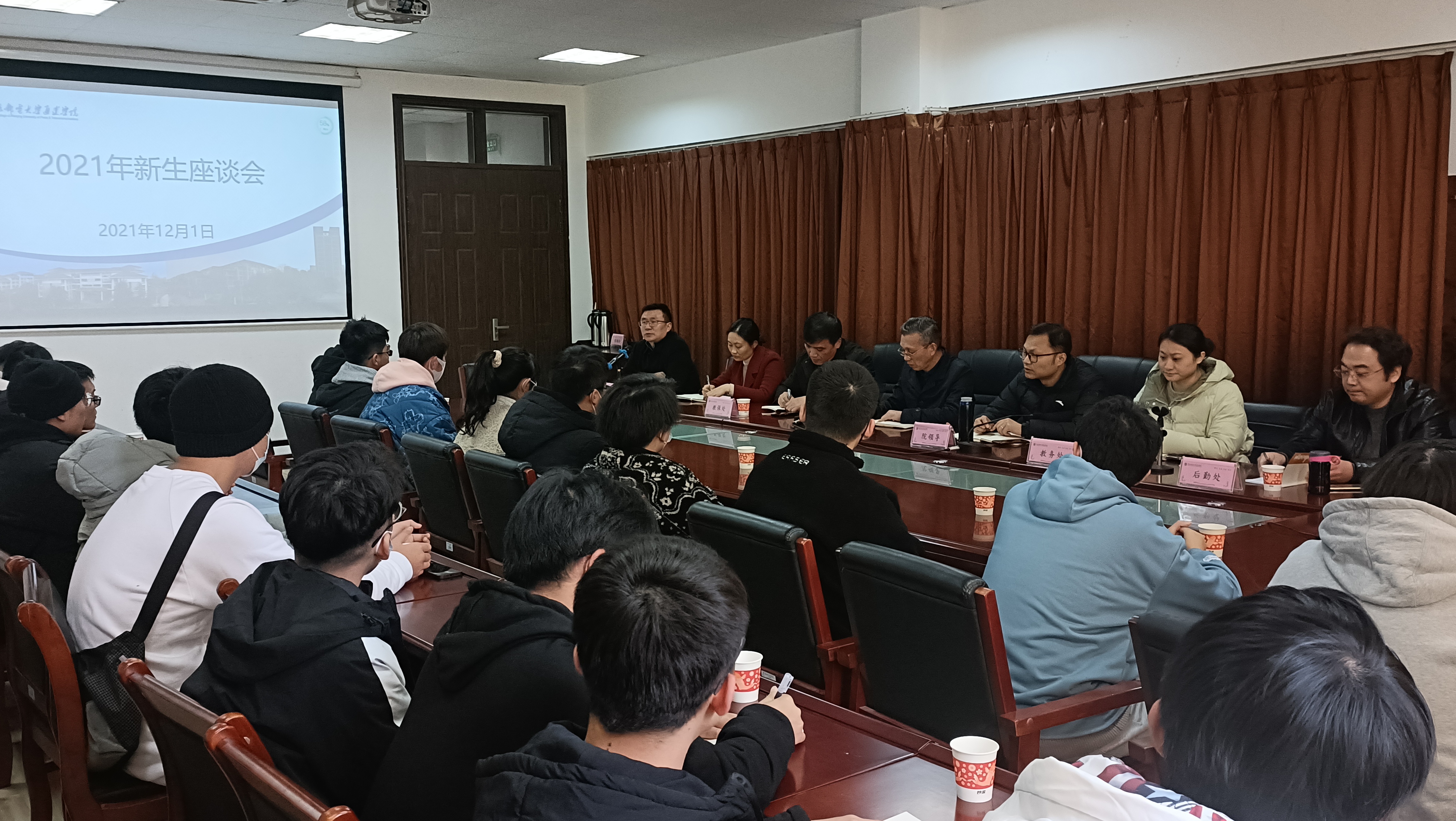 12月1日下午,万象城官网在大学生活动中心二楼会议室组织召开了2021级新生代表座谈会。常务副院长赵洪牛、党委副书记兼副院长王楷、相关职能部门负责人以及22位2021级新生代表参加了此次座谈会。座谈会由学生工作处处长解厚荣主持。