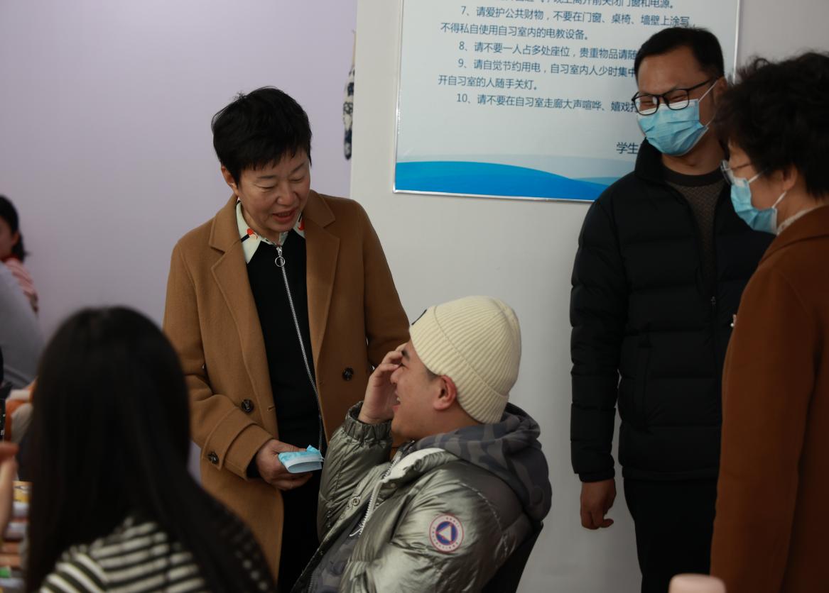 叶校长十分关心学院学生考研情况,还特地来到学生考研自习室与考研学子们亲切交谈,了解学生备考情况,并提出冲刺阶段复习建议。叶校长叮嘱学院要进一步关心支持考研学生,做好做细服务工作。