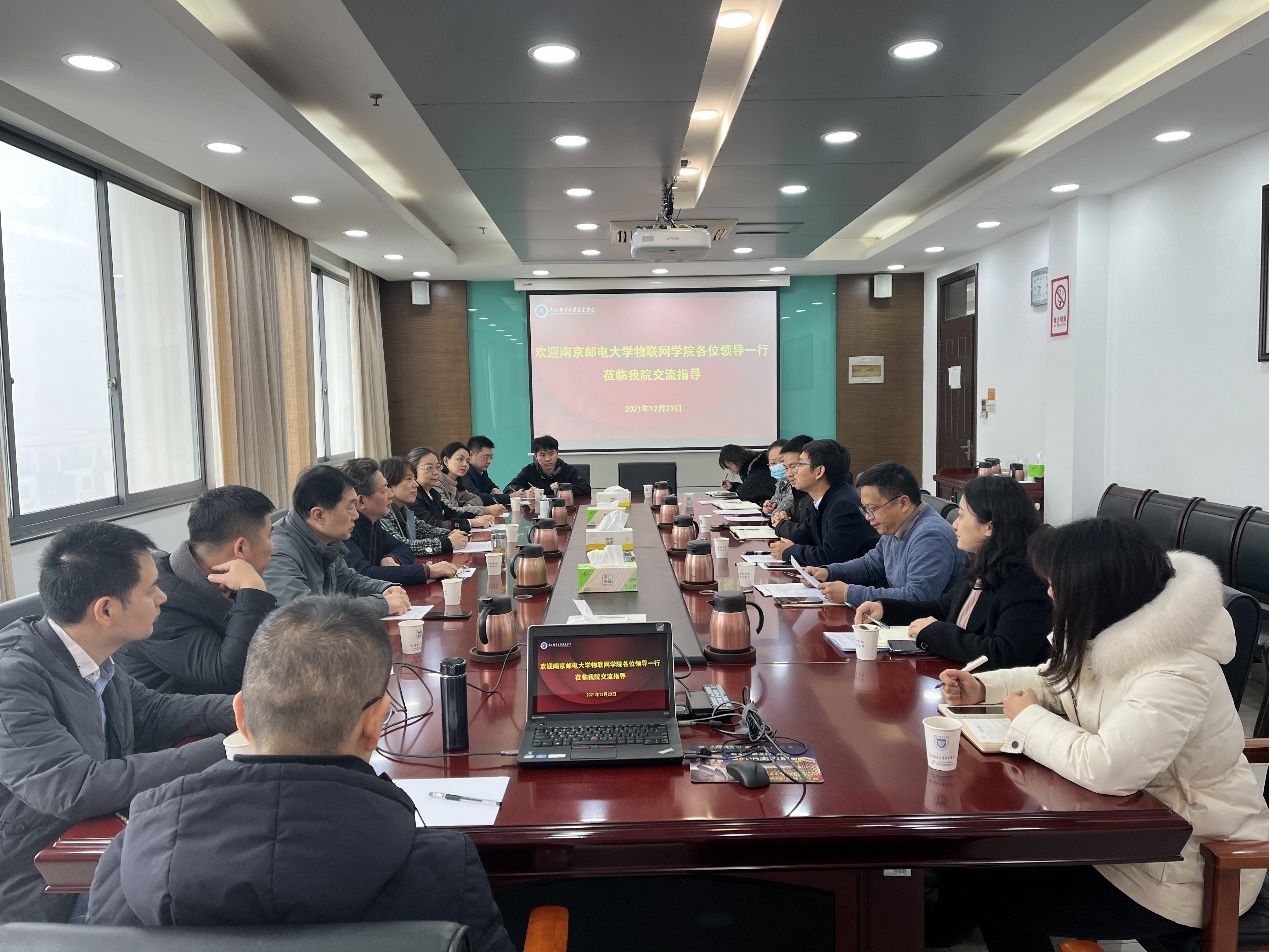 12月23日上午,awc777万象城娱乐官网物联网学院院长张登银、党委书记邓艳华,副书记徐磊,副院长潘甦、陆音等一行来万象城官网进行共建交流。万象城官网院长王承宽、党委书记朱清、常务副院长赵洪牛等领导热情迎接物联网学院一行并就共建学院整体工作进行了交流,副院长刘允、教务处、计算机工程学院等二级单位负责人及部分老师就教学工作进行了研讨。