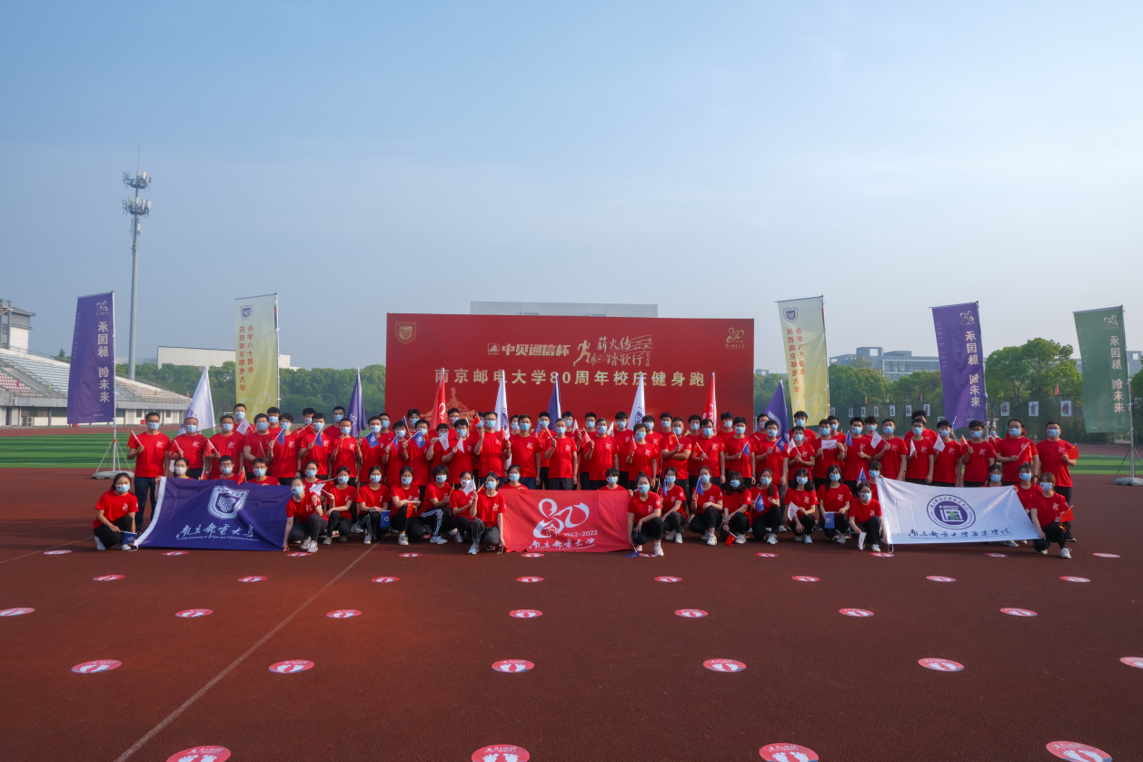 在庄严的升旗仪式后,校庆健身跑拉开帷幕。随着朱清书记宣布校园跑开跑、发令枪响,身着红色服装的80名师生代表沿途依次通过体育场、篮球场、教学楼、学生宿舍、第二餐厅等校园地标,最后返回体育场。在这短短的800米跑道上,师生们以跑步的方式,用自己的脚步细细丈量南邮红色校史,在奔跑中感悟南邮“战邮”红色基因、“邮电”绿色基因、“大信息”蓝色基调,传递“信达天下、自强不息”的南邮精神。