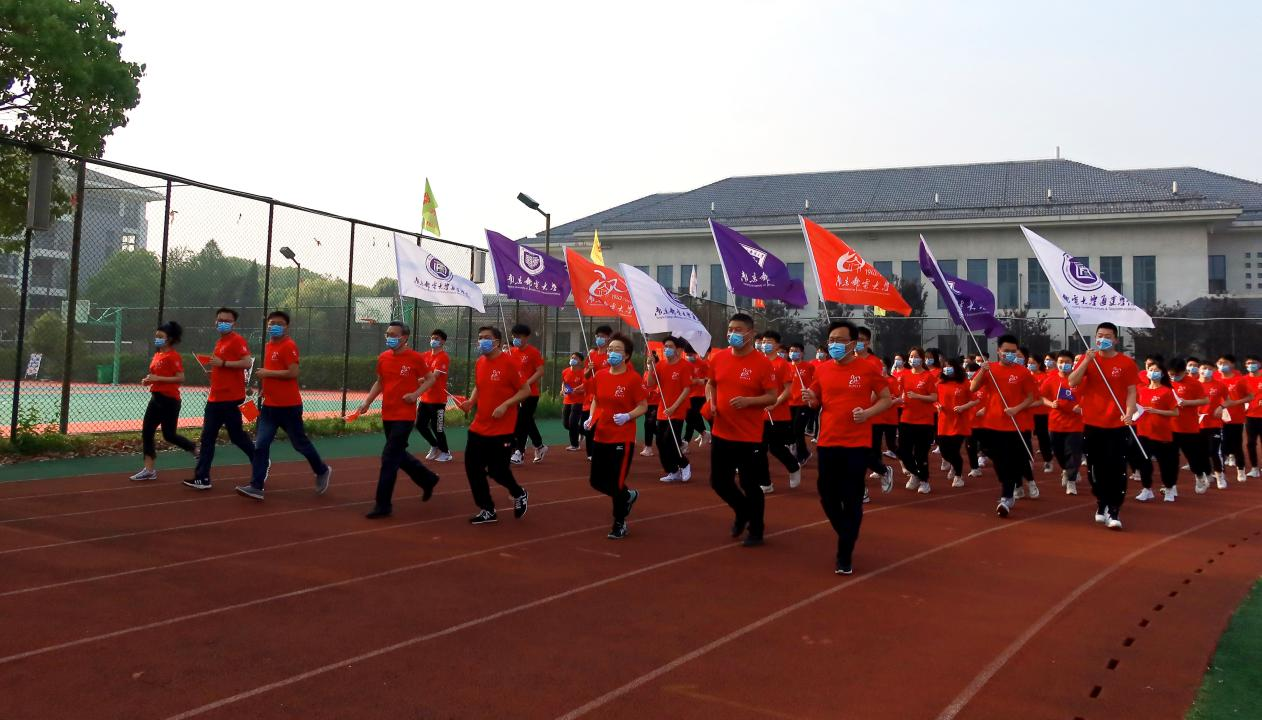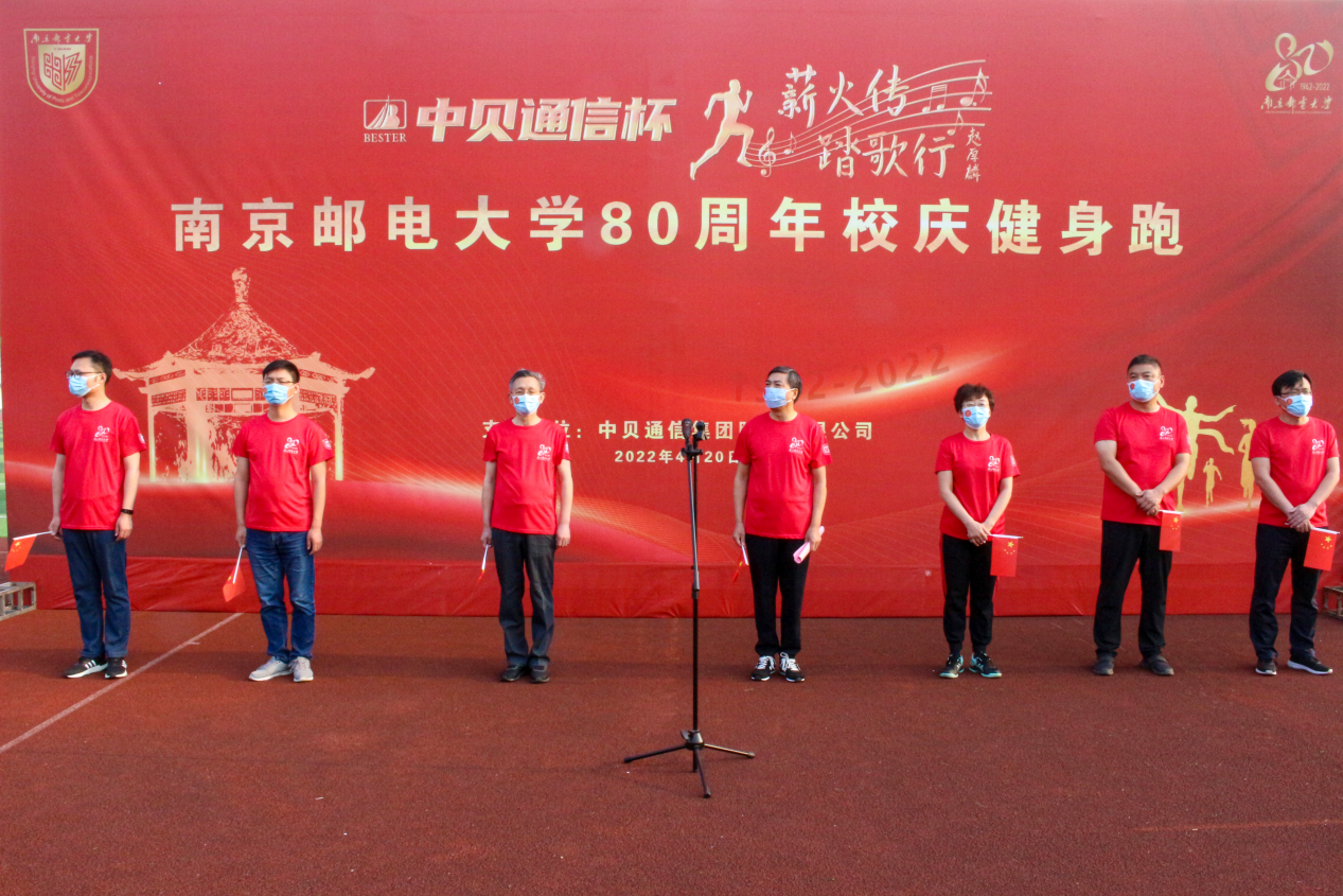 升旗仪式上,王国平院长深情地说:“今天,在这样一个特殊环境下,在校庆这样一个特别的日子里,举办健身跑,就是希望全体师生秉承南邮精神,践行南邮校训,发扬南邮校风,迎难而上、主动而为,用实际行动展现深厚的家国情怀、奋发向上的精神风貌和强烈的社会担当。王院长寄语同学们在疫情当下,善于管理自我情绪;做善学善思的南邮人;保持健康生活方式。最后,他鼓舞全体师生,面对逆境,要有“赤橙黄绿青蓝紫,谁持彩练当空舞”的心态,用奋斗的青春赓续“底色”,用向上的力量绘制“未来色”,争做“红绿蓝”三色融通奋进的南邮人。