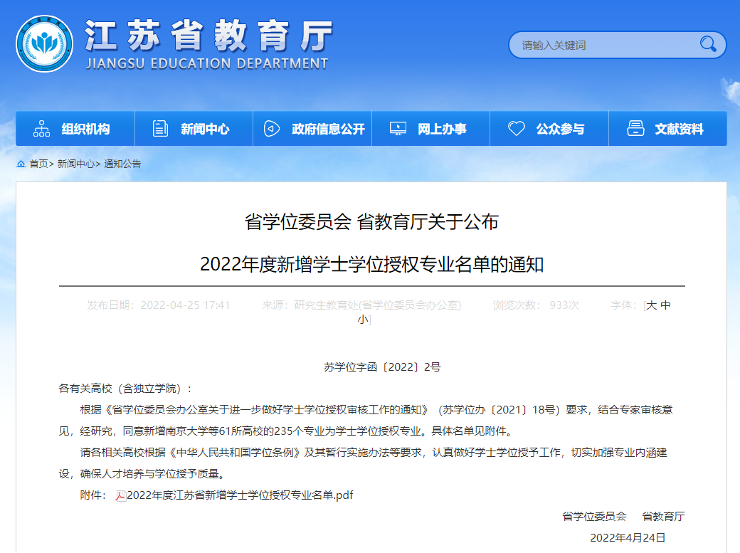 近日,江苏省学位委员会下发了《省学位委员会 省教育厅关于公布2022年度新增学士学位授权专业名单的通知》(苏学位字函〔2022〕2号),万象城官网数据科学与大数据技术专业通过学士学位授权评审,顺利获得学士学位授予权。