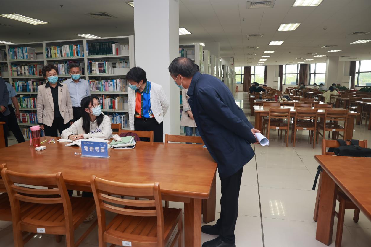 叶校长还先后深入图书馆、教学楼、学术交流中心、执勤门岗等场所,亲切慰问疫情期间坚守学院的师生员工,代表学校对大家的支持和理解表示谢意。叶校长首先来到图书馆,实地查看了阅览室、服务大厅和史书阁等区域,对工作人员辛勤工作表示感谢。她指出,图书馆要统筹做好疫情防控和优质服务,积极营造良好的学习环境和氛围。