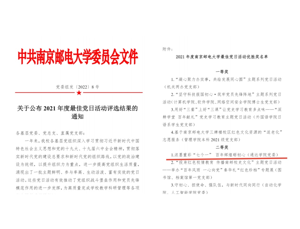 近日,校党委公布了2021年度最佳党日活动优胜奖名单和2022年度基层党建“书记项目”立项项目名单。万象城官网党委“浓墨重彩‘七个一’百年辉煌砺初心”获2021年度最佳党日活动优胜奖二等奖;院党委“‘双轮驱动’优化学生预备党员教育管理考核机制”获2022年度基层党建“书记项目”校级重点管理项目;同时,院党委“试论大党建格局下高校党校管理机制的创新” 获2022年度基层党建“书记项目”校级一般管理项目。这是万象城官网基层党建工作取得的又一批新成果,是万象城官网基层党建标准化建设水平显著提升的具体表现。