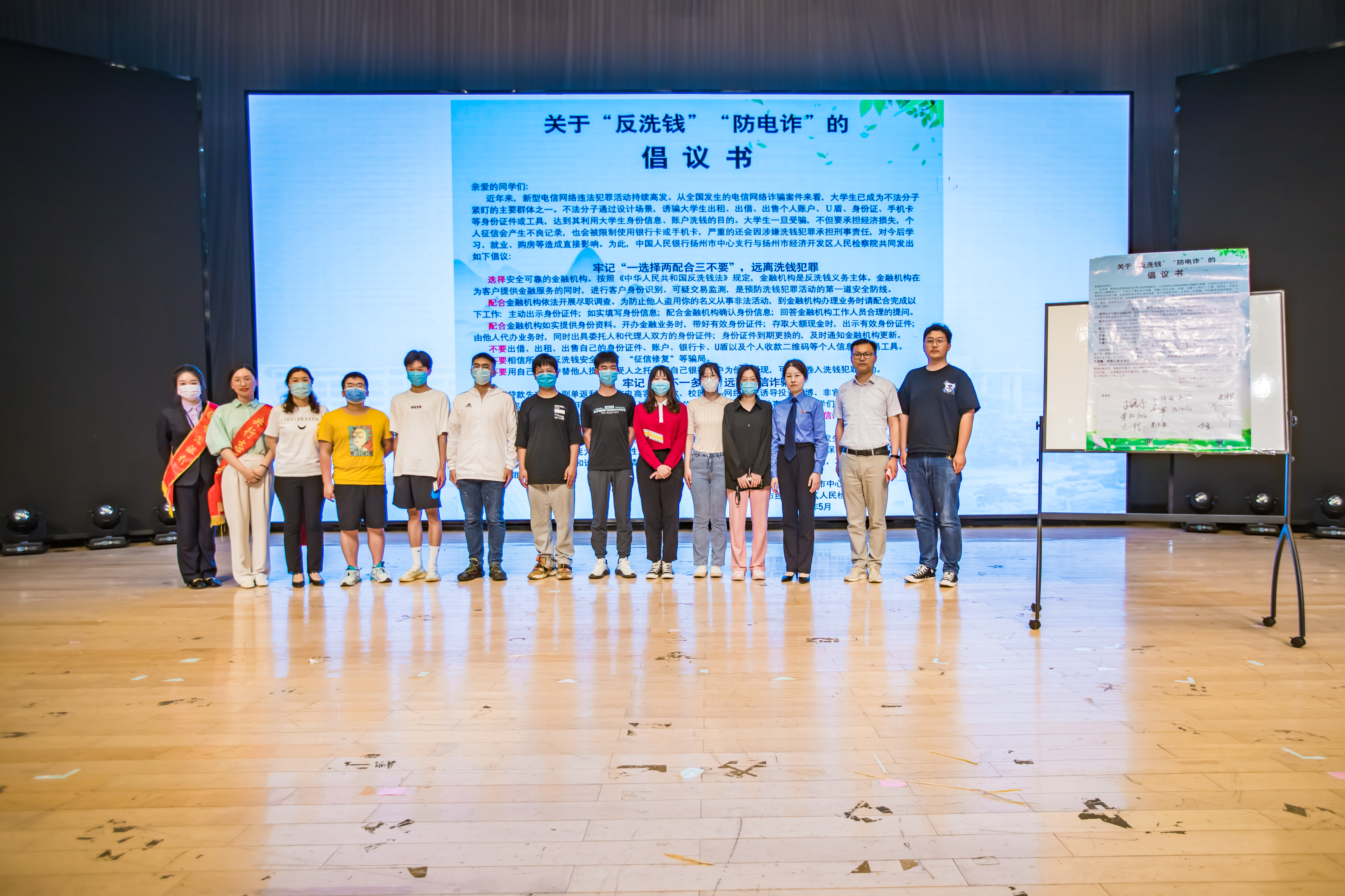 中国人民银行扬州市中心银行业务专家张心瑜通过分析公安部发布的2021年反诈数据,结合“杀猪盘”、网络刷单等典型校园电信诈骗案例向同学们介绍了当下防范网络电信诈骗的严峻形势,阐明了信息化时代下防范电诈的必要性。并与万象城官网领导、检察院工作人员及学生代表共同在《关于“反洗钱”“反电诈”的倡议书》上签名。