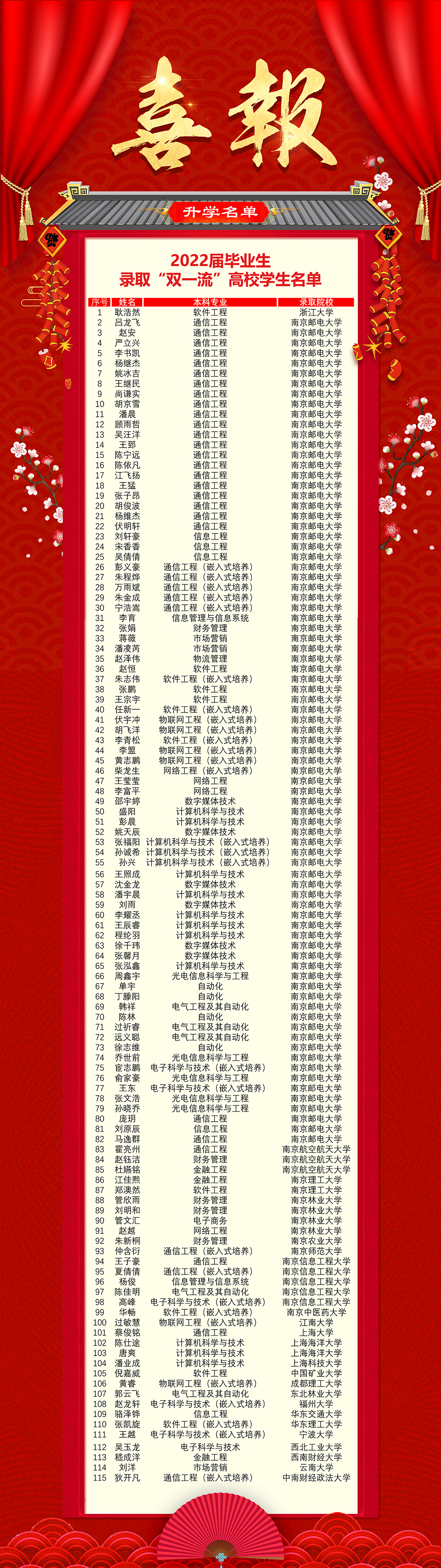 万象城官网2022届考研学子再创考研佳绩,385名同学被录取为国内外硕士研究生,成功获取通往更高学府的通行证。据统计,今年共有115名学生被国家“985工程”重点建设高校、“211工程”重点建设高校、国家“双一流”建设高校录取,录取双一流及以上高校比例占比近三分之一,录取高校质量有了进一步提升。其中,有敢于挑战成功被浙江大学录取的学长,有善于总结以初试第一成绩被awc777万象城娱乐官网录取的学长,有勇于突破成功获得世界大学排名第38位的悉尼大学offer的学姐,也有彼此扶持携手并进全部上岸的男生宿舍、女生宿舍。