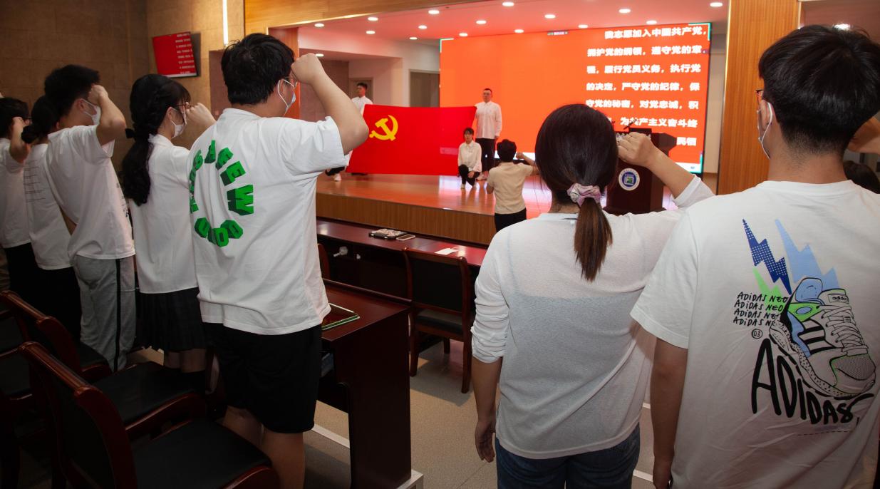 随后,在朱清书记的领誓下,全体预备党员起立并举右手握拳,面向党旗进行庄严宣誓,在鲜红党旗的映衬下,一句句誓言铿锵有力。浓厚的仪式感让学员们身心都接受了一次特殊的洗礼,此次活动激励党员们牢记入党誓词,赓续光荣传统,强化责任担当,更好地完成党和人民赋予的使命,以梦为马、砥砺前行,以优异成绩迎庆党的二十大。