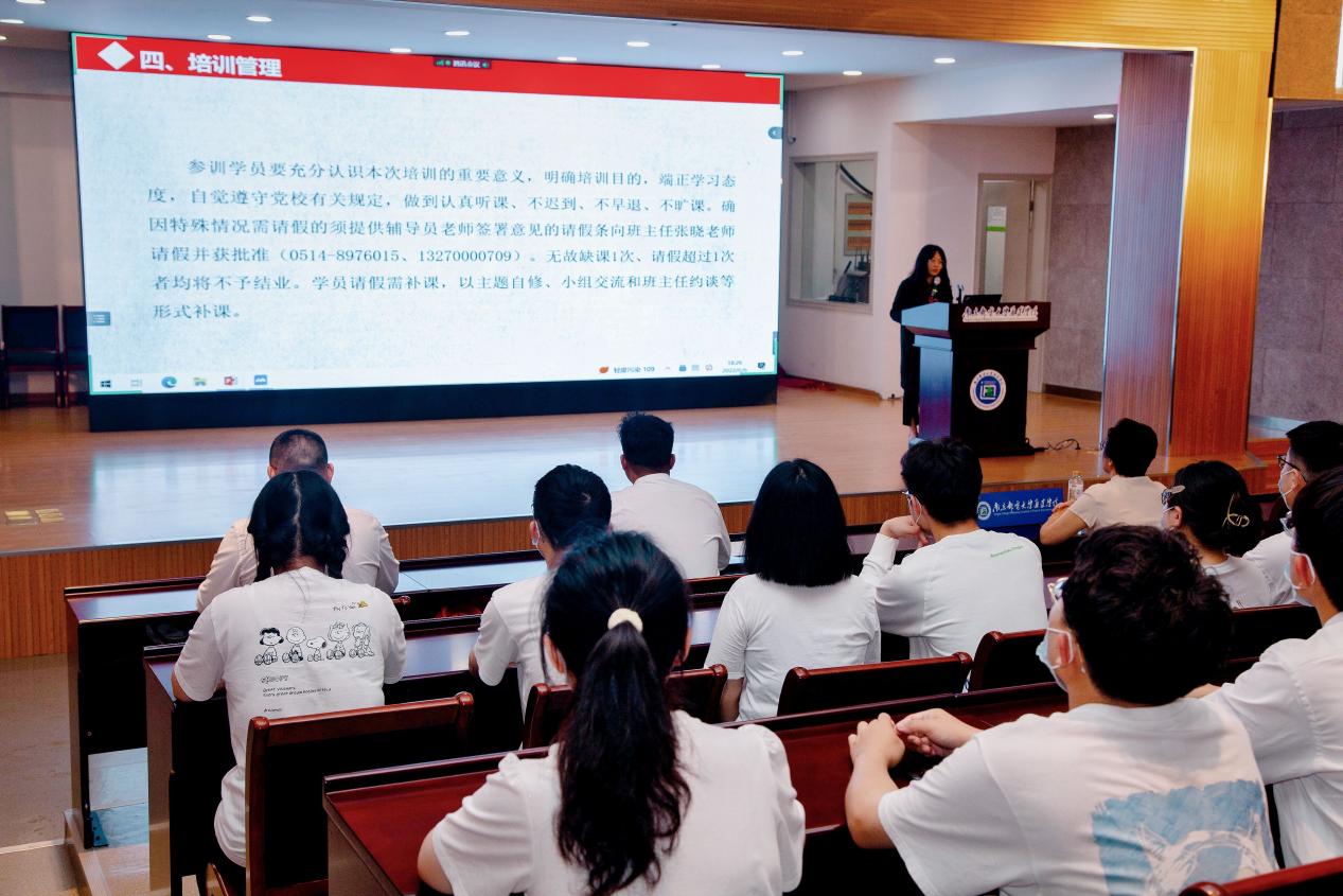 开班典礼伊始,任建蕊向全体学员介绍了本次培训班的具体安排和注意事项。本次培训班丰富培训形式,在集中培训的基础上加入了实践活动和志愿服务两大内容,进一步搭建实践平台,促进预备党员常态化服务,引导其具象化作用的发挥。