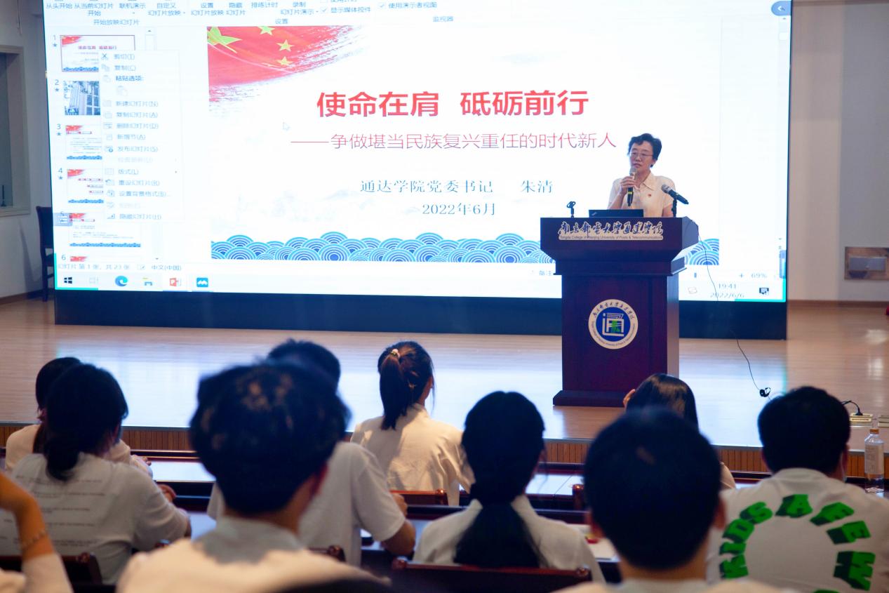 开班典礼结束后,朱清书记讲授“使命在肩,砥砺前行——争做堪当民族复兴重任的时代新人”专题党课。朱书记围绕中国共产党人的初心和使命,两个一百年奋斗目标,争做复兴栋梁、强国先锋等内容展开,重点讲授了作为一名万象城官网预备党员如何争做复兴栋梁。她强调要强化党员意识,要做到在平常时候看得出来,永葆为民初心,擦亮党徽红;要践行庄严承诺,要做到在关键时刻站得出来,牢记使命担当,勇当先锋队;要传承红色校史,挺起主心骨,牢记“一个党员就是一面旗帜”,时刻鞭策自己,身体力行,争当表率。