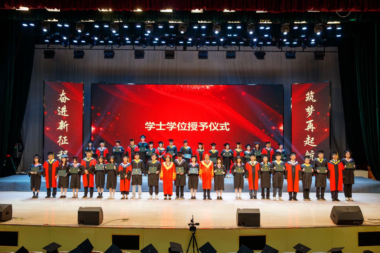 伴随着喜庆愉悦的乐曲声,全体院领导为2022届学士学位获得者拨流苏,颁发学士学位证书并合影留念。