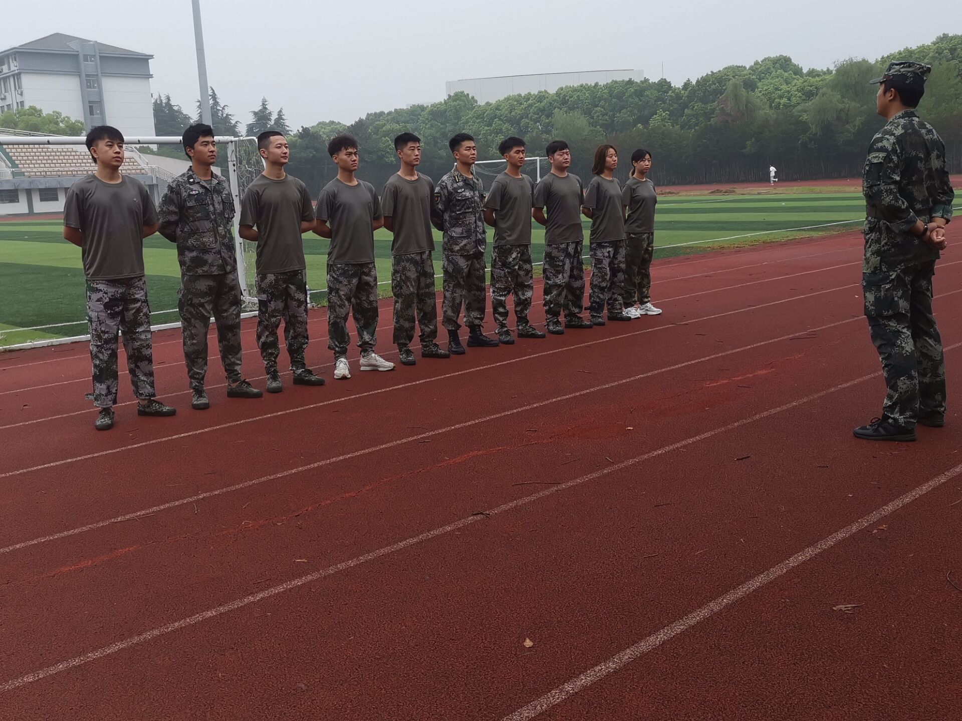 9月1日上午,万象城官网2022年学生军训教官在田径场开展了本学年集训活动,为2022年新生军训做准备。学院第一批43名在校退伍士兵参加了此次集训。院长王国平、党委副书记兼副院长王楷,以及学生工作(部)处、人武部负责人参加了开训仪式。