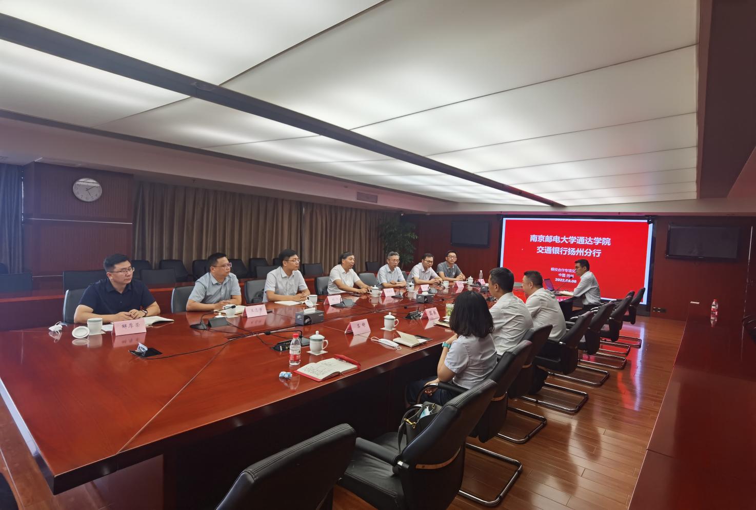 潘晓松行长代表交通银行扬州分行对王国平院长一行表示热烈欢迎,回顾了双方前期合作情况、业务发展,并围绕“交银慧校”介绍了公司在银校合作领域的新产品。他表示希望双方继续拓展银校合作宽度,期望双方在人才培养、实习实训、人才招聘等领域拓展合作空间。