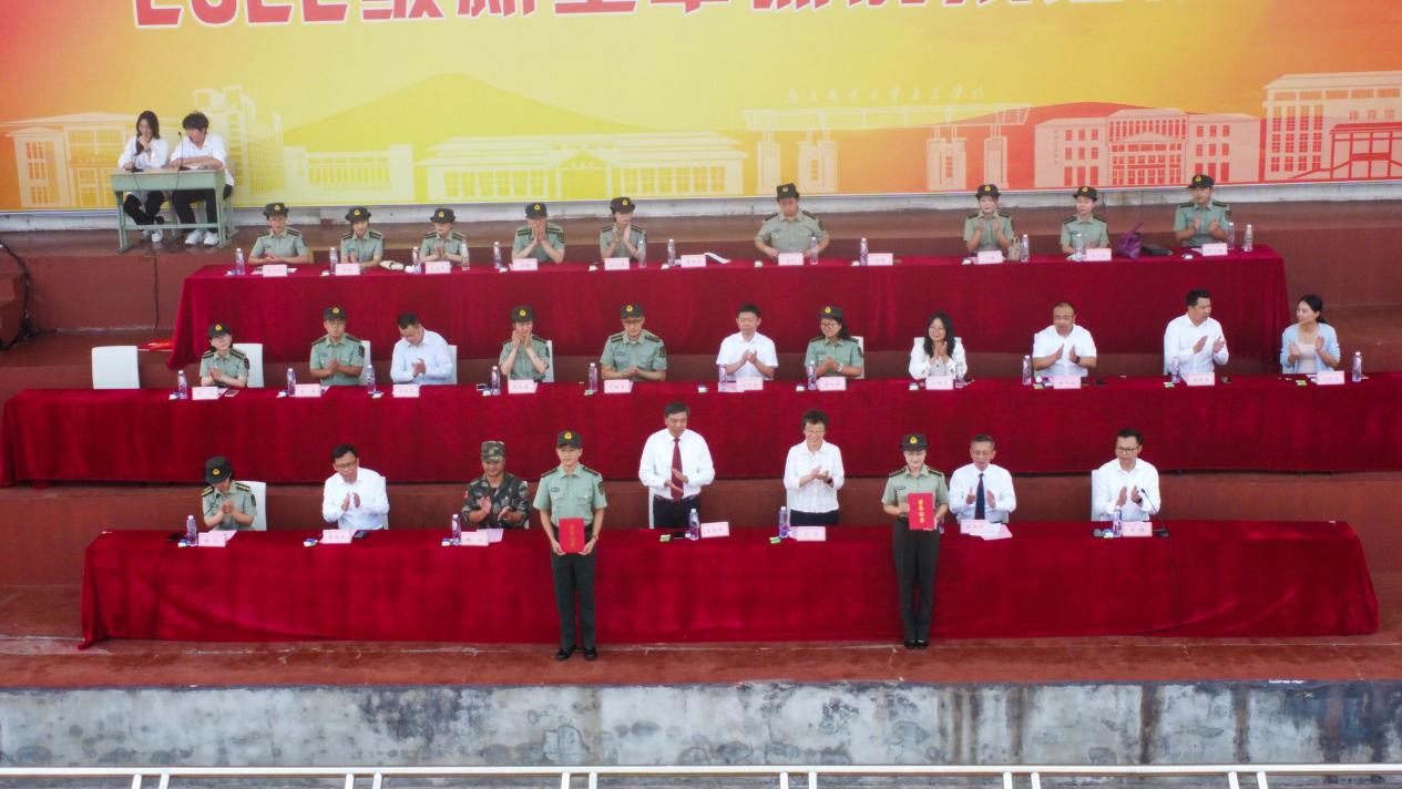 汇报表演结束后,学院常务副院长赵洪牛宣读了学院对15个优秀军训连队、97名优秀军训标兵、12名优秀军训教官、2名优秀军训指导员和1个军训工作先进集体的表彰决定。学院领导与军训团总教官先后为获奖集体与个人颁奖。