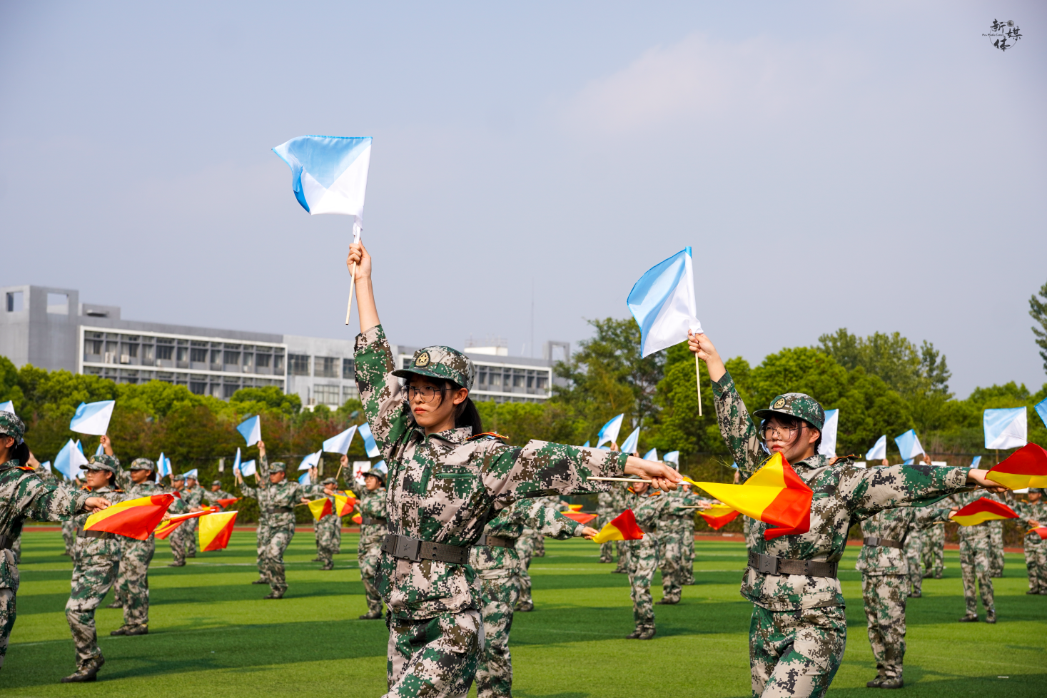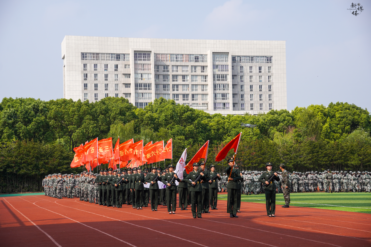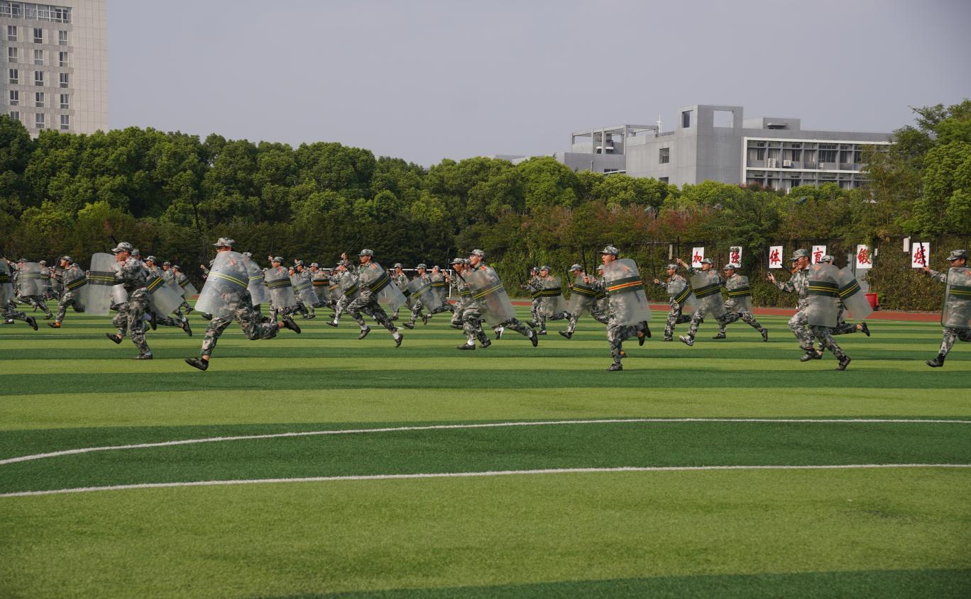 2500余名新生列着整齐的队伍,在教官的带领下,以嘹亮的口号、严密的纪律、过硬的素质接受主席台领导和老师的检阅。军乐声声,战旗猎猎,4个营32个军训方队依次经过主席台前,步伐坚定、队形整齐、气宇轩昂,展现了新时代中国青年“请党放心、强国有我”的精神风貌。1000余名受训学生分三个方阵展示了海军旗语、女子擒敌拳、防爆处突等表演。整齐划一的动作,刚劲有力的拳脚,娴熟连贯的队形变换,赢得了在场师生的阵阵掌声。