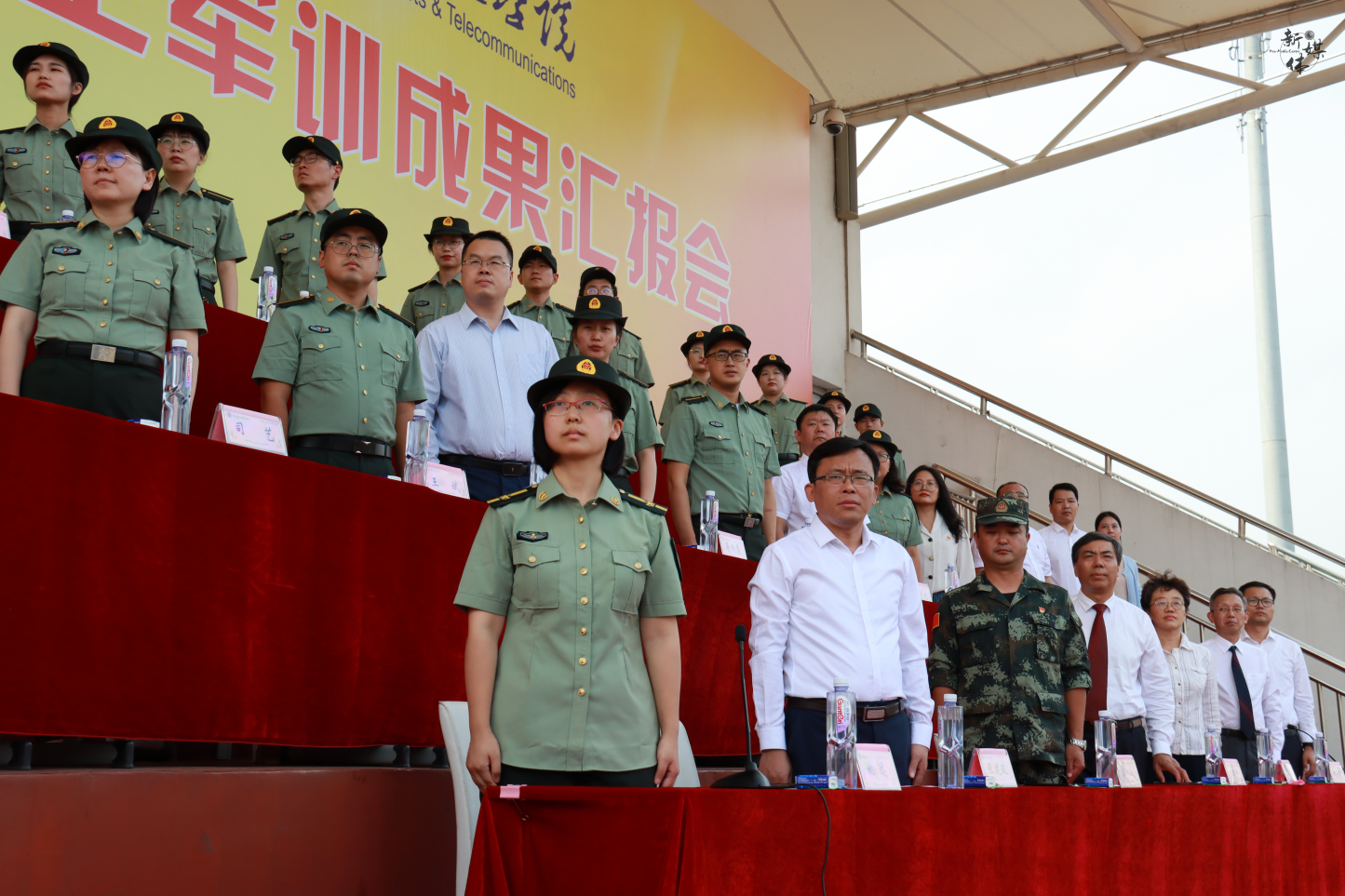 军训成果汇报会在高亢嘹亮的国歌声中拉开帷幕。