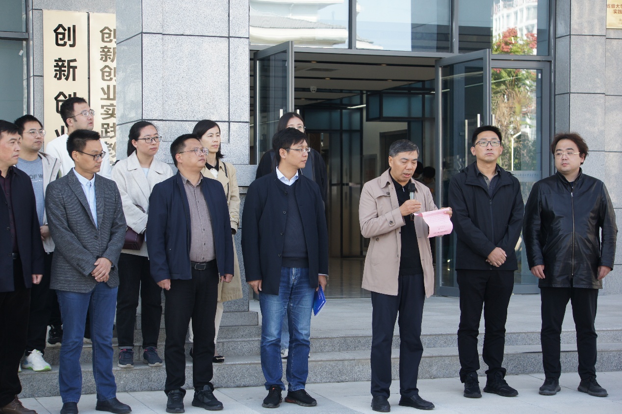 启动仪式上,王国平院长发表讲话,他介绍了学院近年在创新创业工作中取得的突出成果,并对双创基地的老师们、同学们提出了殷切希望。他强调要培养出胸怀理想、敢闯敢试、敢为人先、堪当民族复兴重任的时代新人。融媒体中心指导教师闫志龙老师和学生代表佘政洋依次做表态发言,他们呼吁同学们能够积极参加各类创新创业实践活动,在大学里建构属于自己的创新创业知识体系。