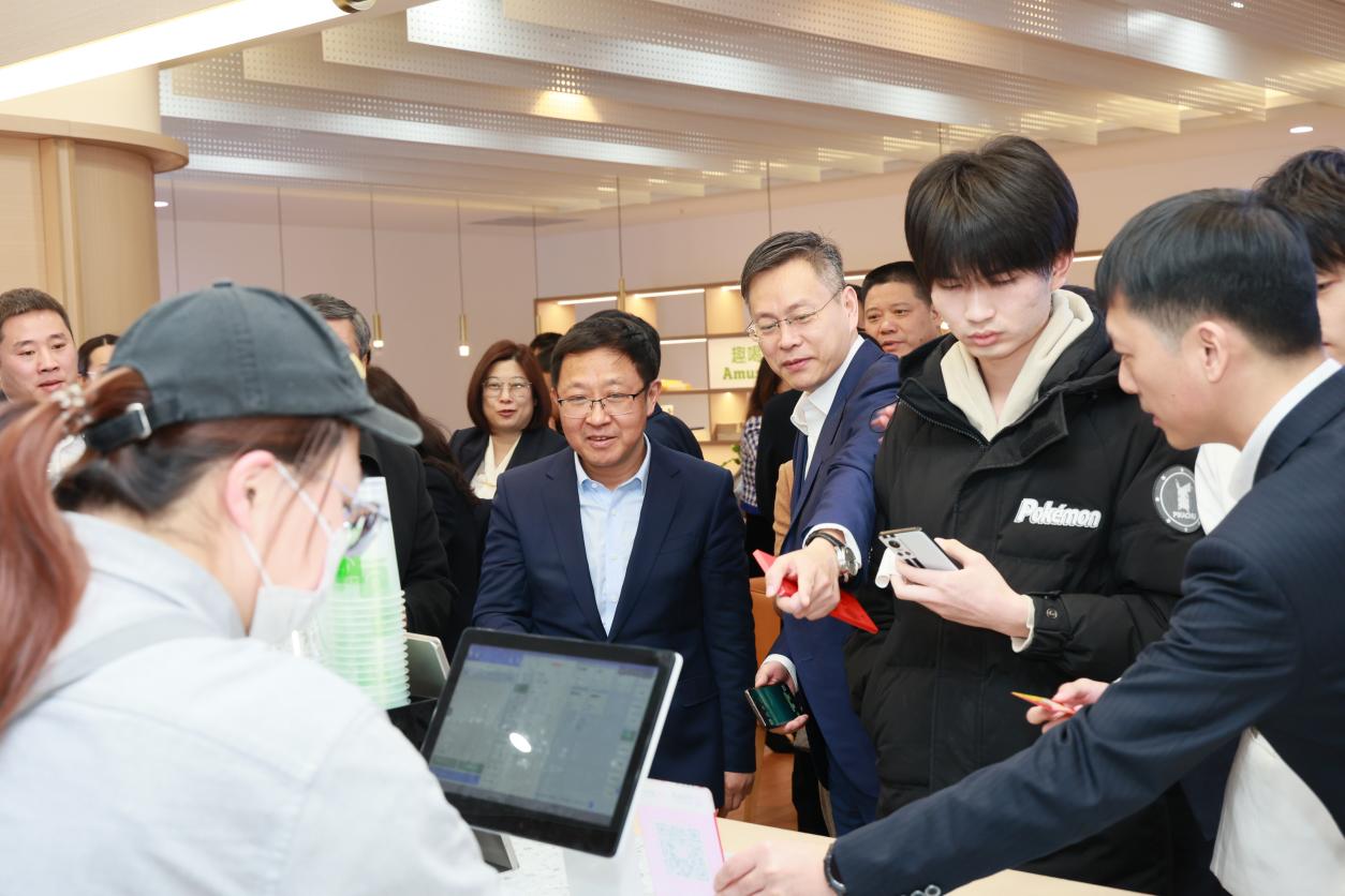 签约仪式后,汤卫华副市长、王国平院长、朱复兴副行长、李宁局长、何敏行长共同启动仪式,并到双创中心咖啡厅观看数字货币场景体验演示。