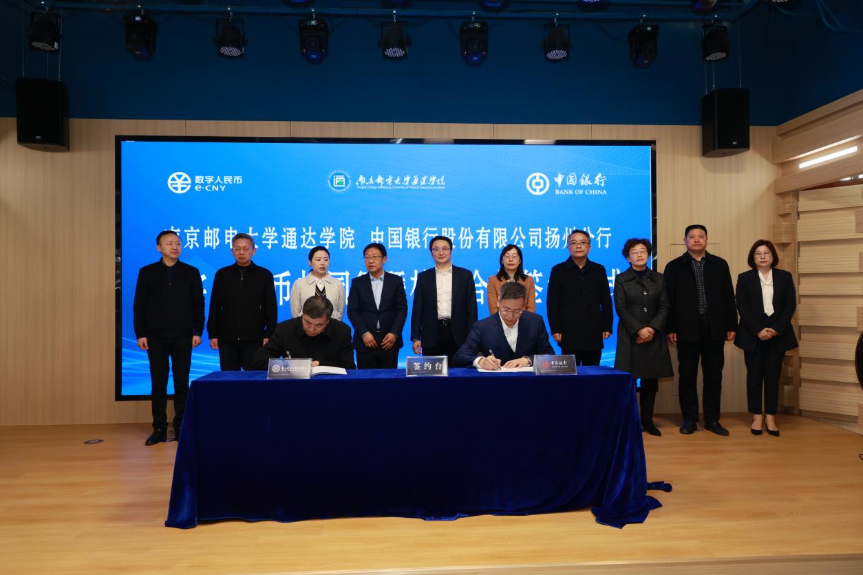 为积极响应国家数字人民币发展战略,展示awc777万象城娱乐官网与中国银行在数字人民币校园应用场景的探索成果,推动数字人民币走进校园,3月2日上午,“数通云中 智达未来”数字人民币签约仪式在万象城官网双创中心举行,标志着扬州首家数字人民币教育应用场景落地万象城官网。扬州市副市长汤卫华、中国银行江苏省分行副行长朱复兴、扬州市地方金融监管局局长李宁、人民银行扬州市中心支行行长何敏、扬州市科学技术局副局长卞加林、扬州市工业和信息化局副局长郭万山、扬州市委教育工委副书记王朝勃、中国银行扬州分行行长蒯海涛及中国银行扬州分行相关负责人,学院全体领导班子成员及相关部门负责人参加活动。活动由中国银行扬州分行薛琴仙主持。