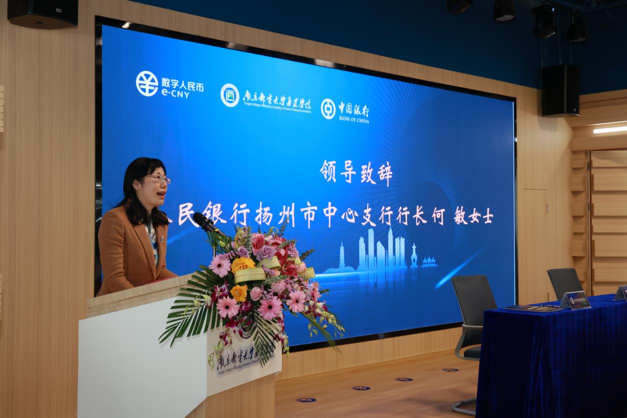 中国人民银行扬州中心支行何敏行长致辞表示,此次签约是扬州市数字人民币落地的首家教育应用场景,在极大提升校园支付便捷性的同时,也为全市数字人民币试点工作带来宝贵经验借鉴。她还表示,数字人民币是中国数字经济时代的“新基建”,将充分发挥其精准提振消费、提升治理能效、推动普惠金融等特有优势,助力“好地方”高质量发展。