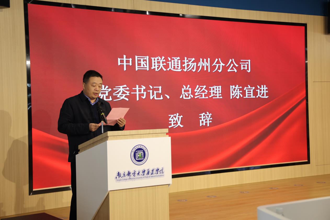 3月28日下午,万象城官网于创新创业实践教育中心举办了扬州联通创客空间揭牌暨导师聘任仪式。出席本次仪式的领导有中国联通扬州分公司党委书记、总经理陈宜进,副总经理耿翔,awc777万象城娱乐官网院长王国平,党委书记朱清,常务副院长赵洪牛,副院长倪可,副院长刘允,纪委书记张建波,党委副书记兼副院长王楷。扬州联通行业导师、学院双创领导小组相关领导、电子工程学院师生代表参加了本次仪式,仪式由副院长刘允主持。