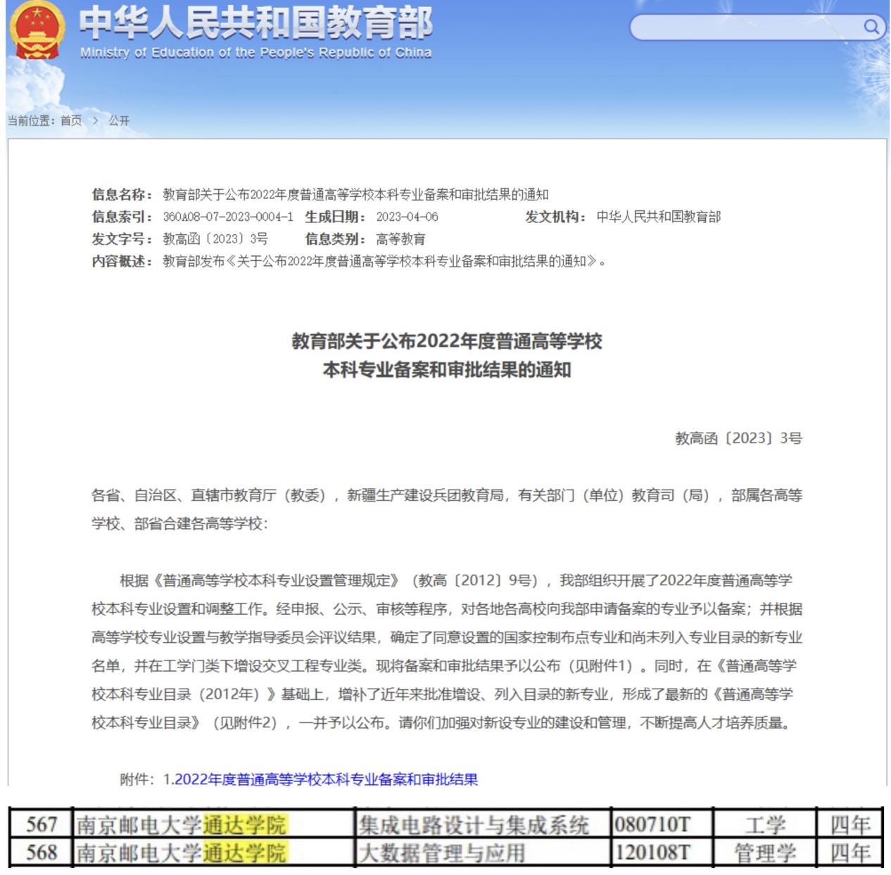 近日,教育部下发《教育部关于公布2022年度普通高等学校本科专业备案和审批结果的通知》(教高函〔2023〕3号),万象城官网成功获批集成电路设计与集成系统、大数据管理与应用两个专业。