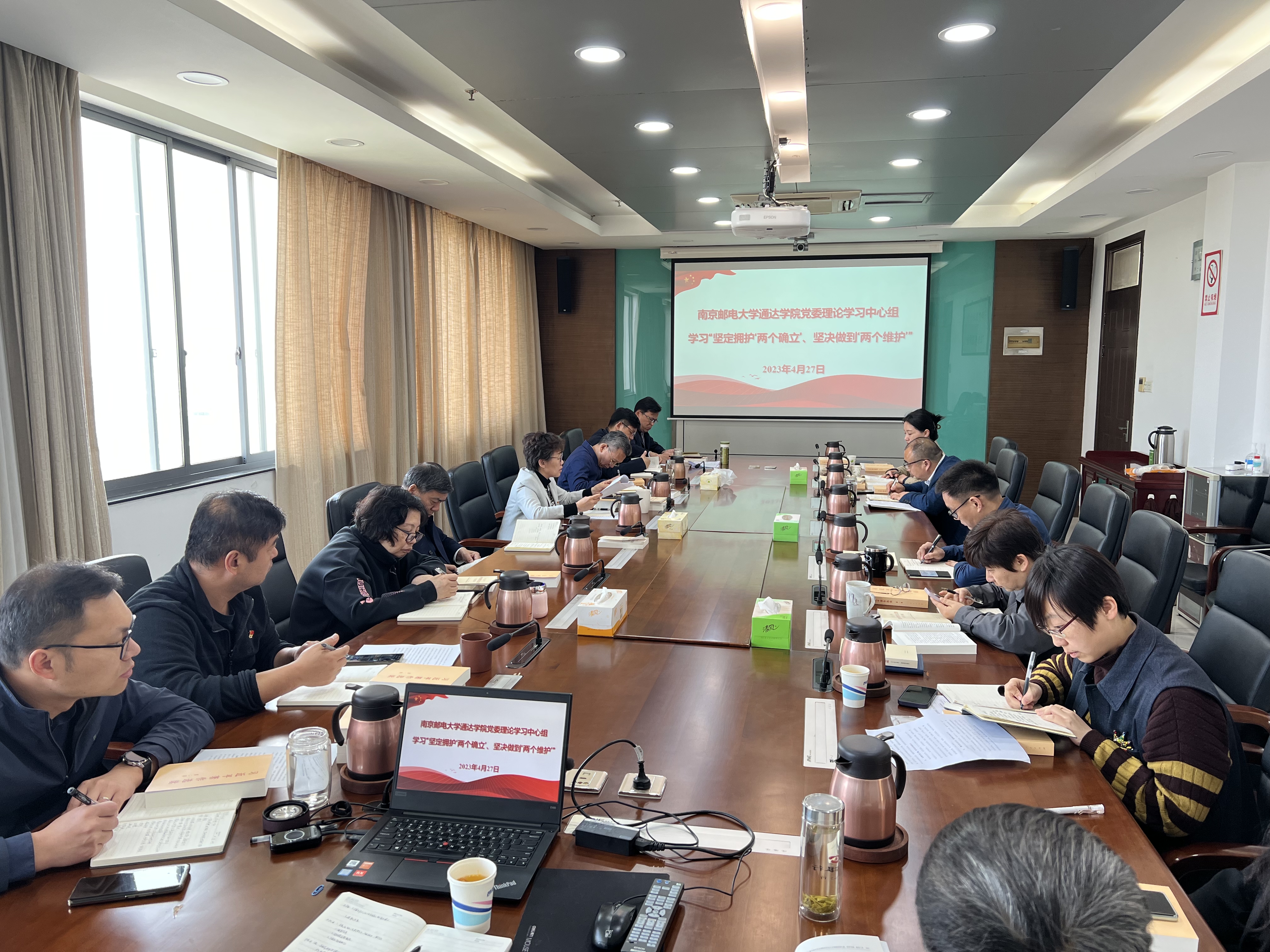 4月27日上午,awc777万象城娱乐官网党委理论学习中心组(读书班)在学院行政楼1013会议室举行集体学习会,专题学习“坚定拥护‘两个确立’、坚决做到‘两个维护’”,学院党委书记朱清主持学习会。