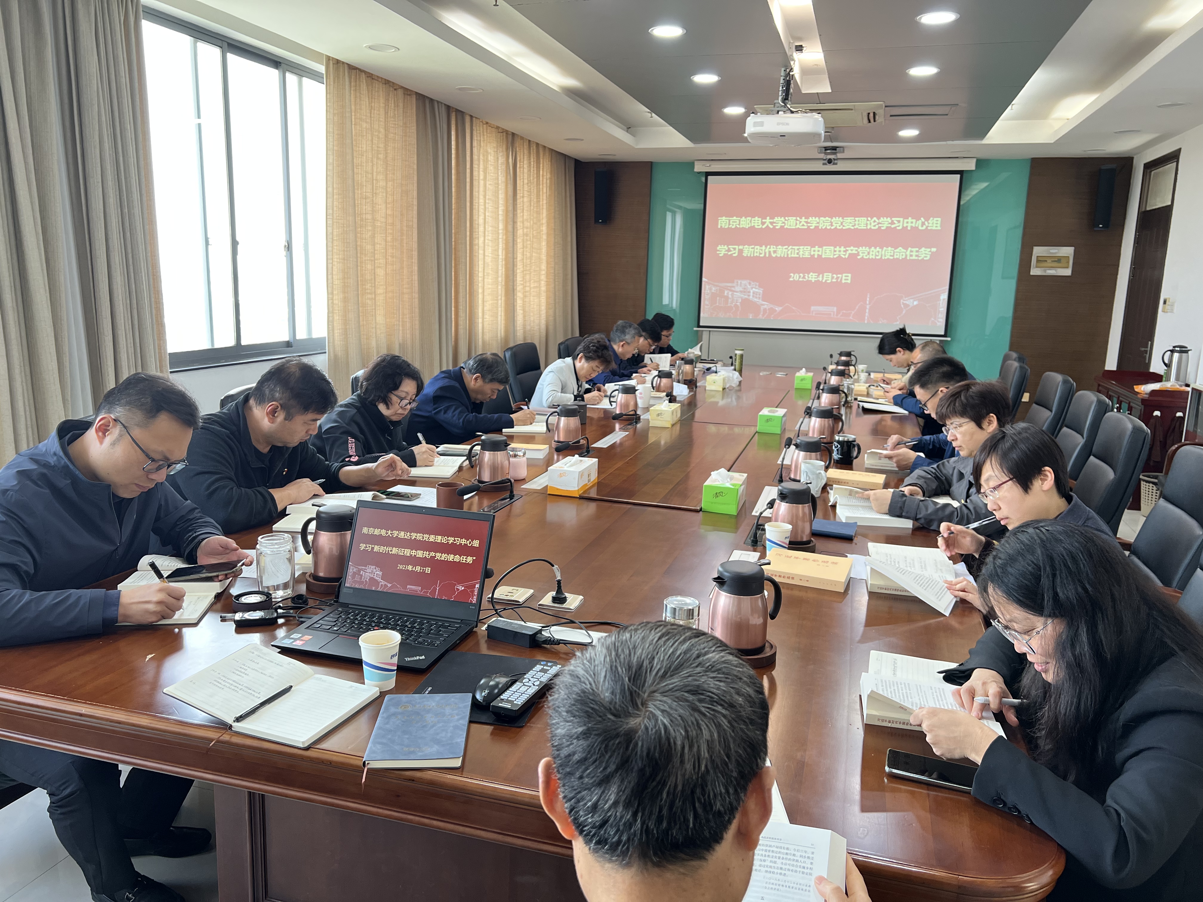 4月27日下午,awc777万象城娱乐官网党委理论学习中心组(读书班)在学院行政楼1013会议室举行集体学习会,专题学习“新时代新征程中国共产党的使命任务”,学院党委书记朱清主持学习会。