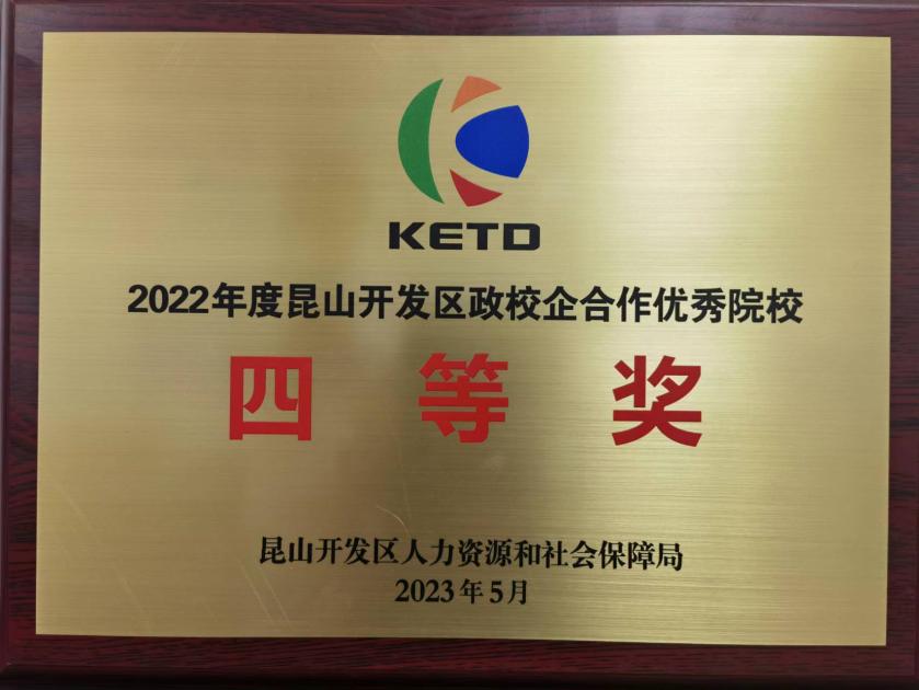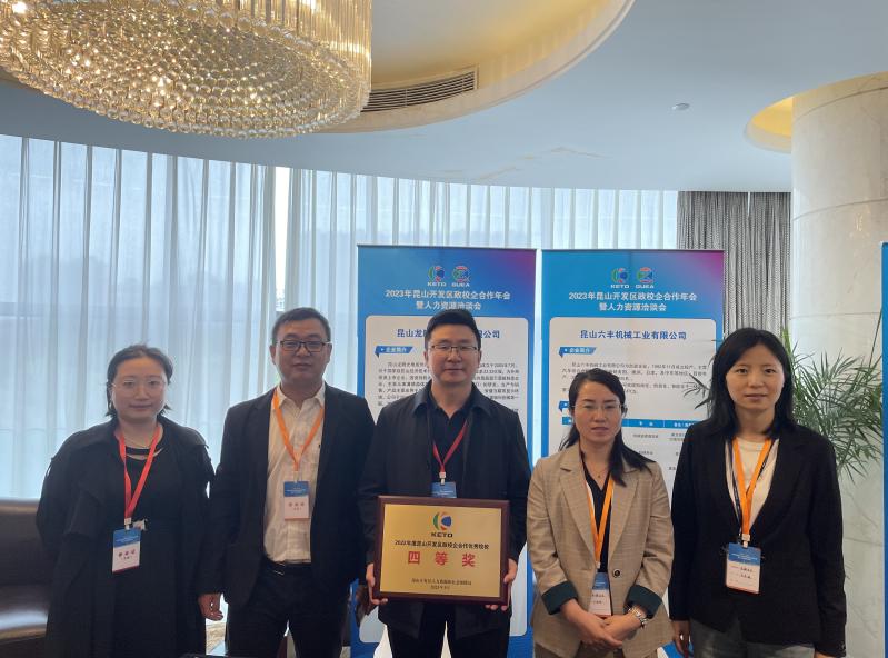 5月24日上午,万象城官网参加“昆山开发区2023年开发区政校企合作年会暨人力资源洽谈会”。首次获评2022年度昆山开发区“政校企合作优秀院校”。