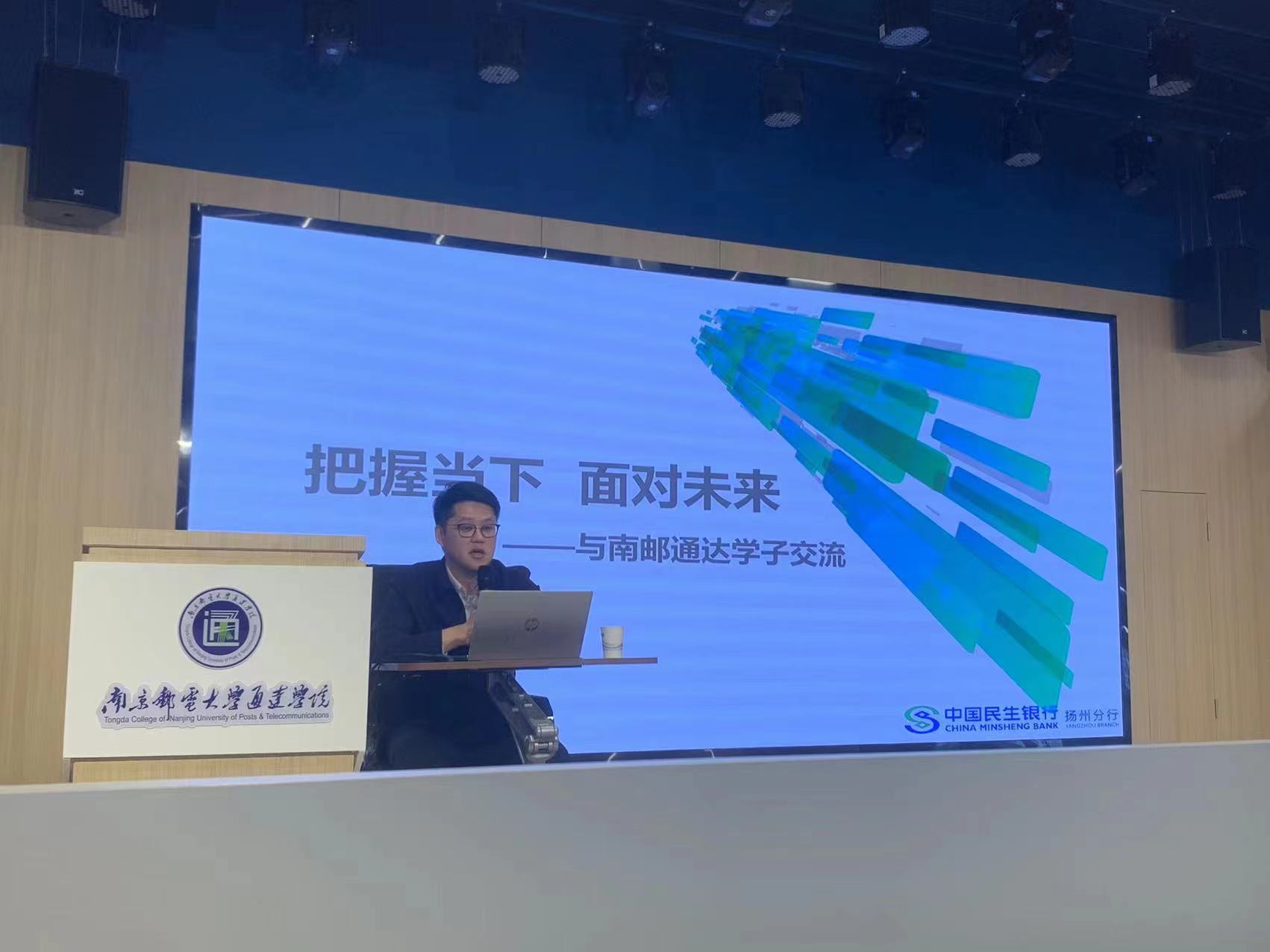 仪式结束后,杜杨坤行长在路演大厅作“金融行业现状与职业生涯指导”专题讲座,并与学生进行现场沟通交流。