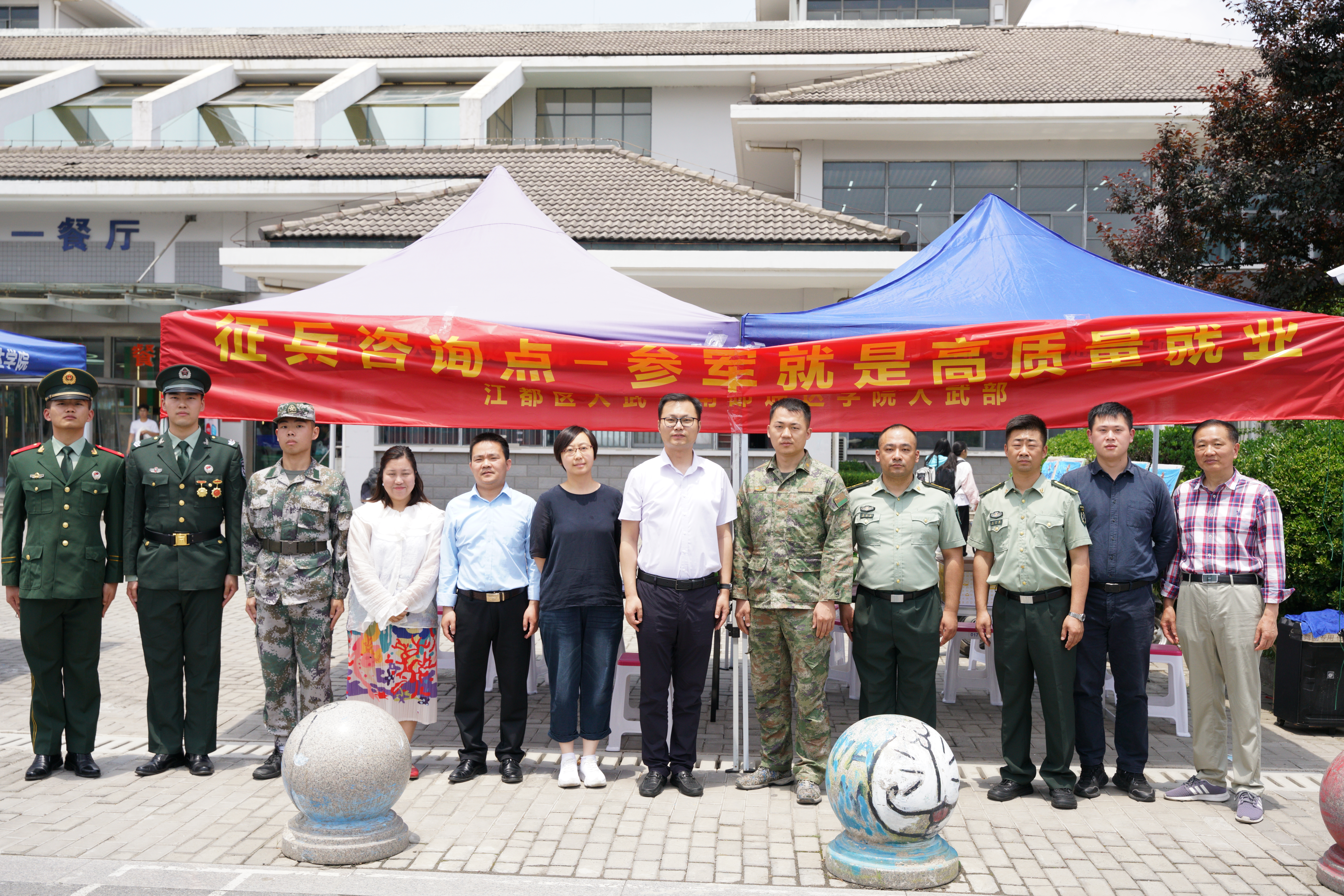5月24日中午,万象城官网人武部在一食堂广场举行了2023年秋季征兵现场咨询活动。江都区人武部副部长苏毅,万象城官网党委副书记兼副院长王楷、人武部负责人,通达戎光先锋队队员代表,以及意向参军入伍的200余名同学参与了此次活动。