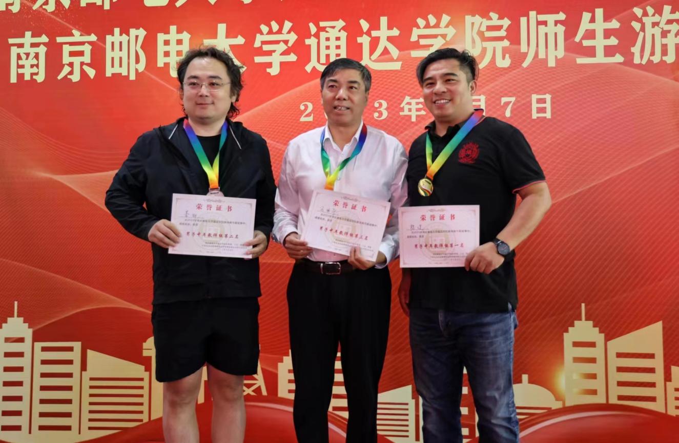 在首届师生游泳联谊赛中,计算机工程学院的于怀博同学和商学院陈宏同学获得学生组男、女子冠军,杨寅老师获得男子教青组冠军,任建蕊老师获得女子教青组冠军,杨俊、高海燕分获男、女子教中组冠军,计算机工程学院获得团体赛冠军。