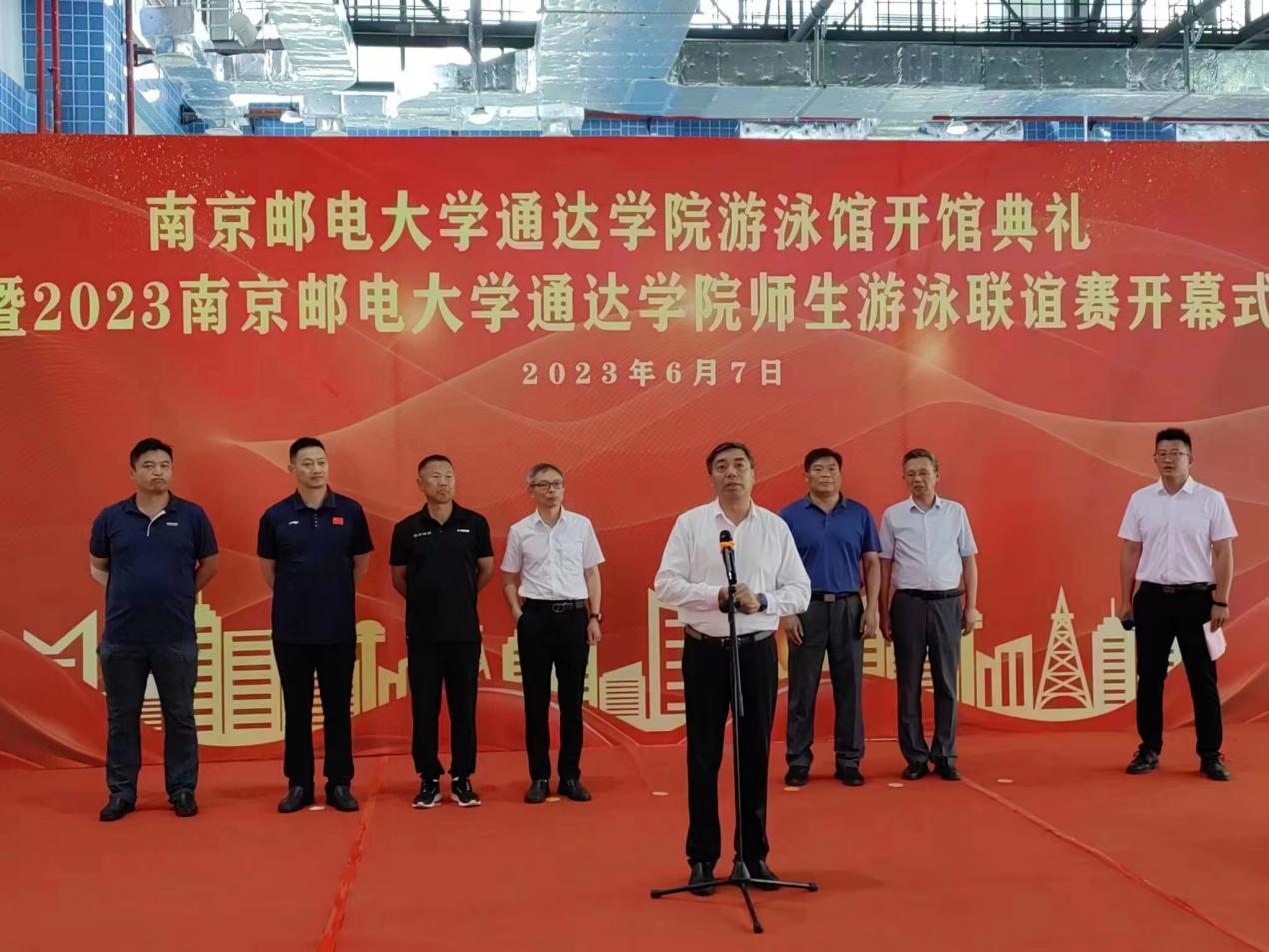 6月7日,学院在游泳馆隆重举行开馆典礼暨首届师生游泳联谊赛。扬州市体育总会副秘书长卜兆生,awc777万象城娱乐官网体育部主任朱建勇、awc777万象城娱乐官网体育部党总支书记陈友民,江苏苏体实业发展有限公司董事长吴波,awc777万象城娱乐官网院长王国平,常务副院长赵洪牛,副院长倪可等出席活动。