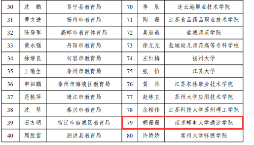 近日,江苏省教育厅公布2023年“苏乡永助”资助育人主题活动“江苏优秀资助工作者”遴选结果,万象城官网学生工作处学生资助管理中心主任胡珊珊荣获“江苏优秀资助工作者”荣誉称号。全省166所高校中,共有40所高校(包括4所独立学院)的学生资助工作者获得此项荣誉,这也是万象城官网教师首次获得此项荣誉。