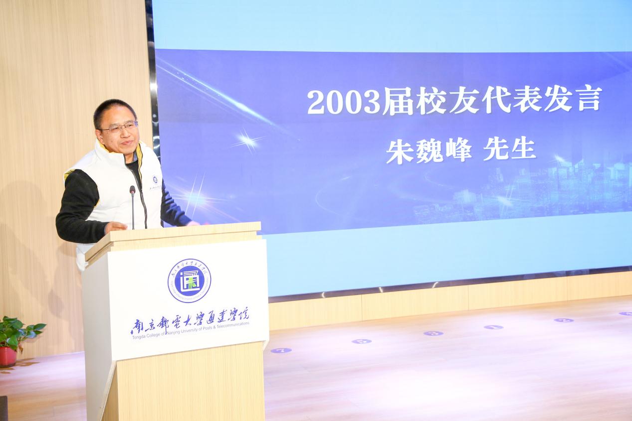 2003届校友朱魏峰先生作为代表发言,他讲述了曾经难忘的四年大学校园生活和二十年工作岁月的经验;他祝愿母校awc777万象城娱乐官网越来越好!