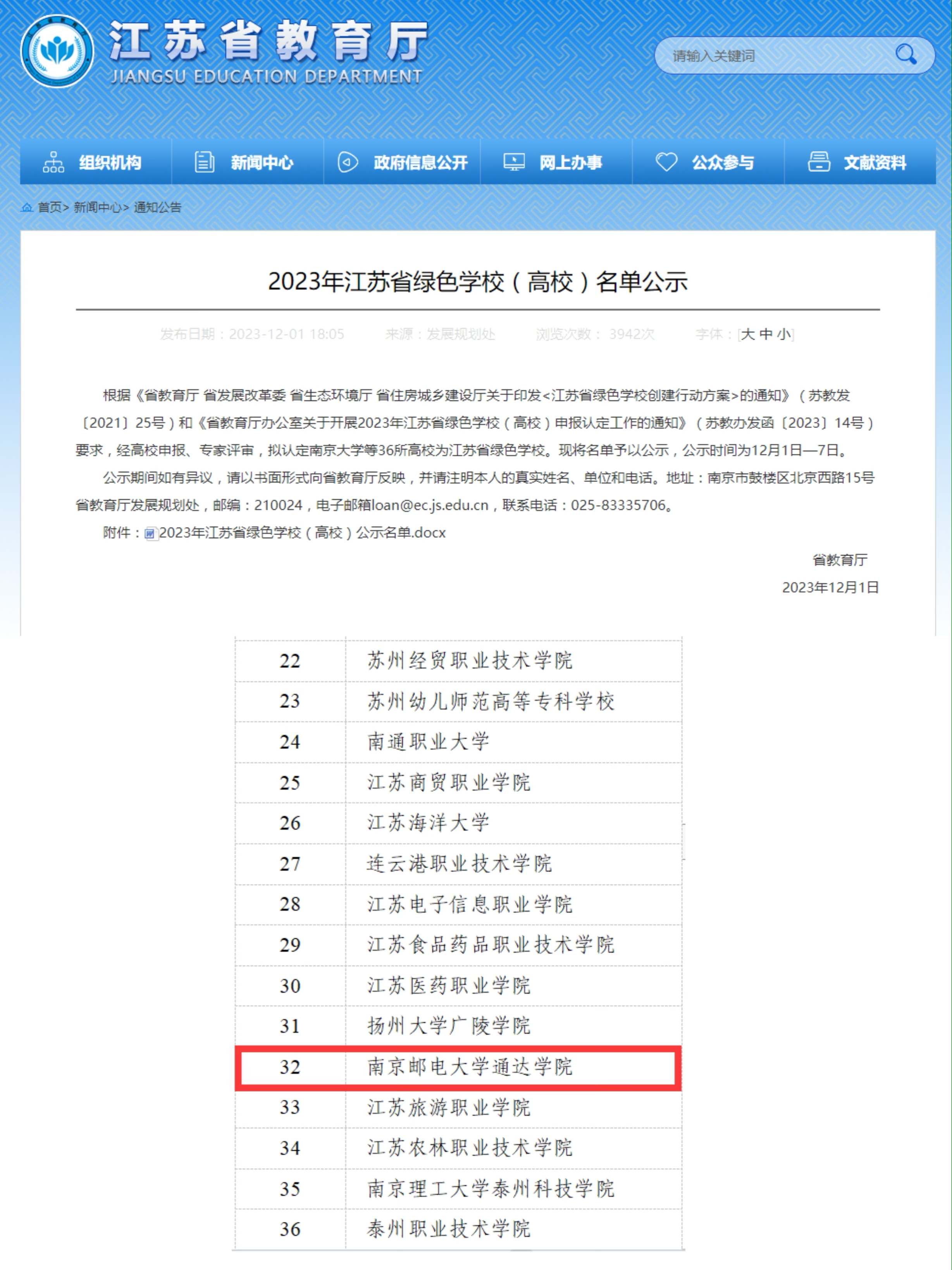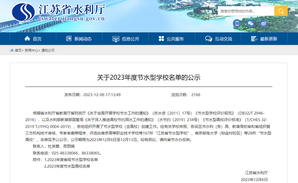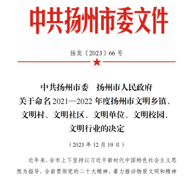 9.校园文明建设再结新果:连续三年荣获awc777万象城娱乐官网校园文化建设优秀成果一等奖。获评“扬州市文明校园”荣誉称号。承办扬州市“全国城市节约用水宣传周”启动仪式,学院首次获评江苏省“2023年度节水型高校”、“江苏省绿色学校(高校)”称号。