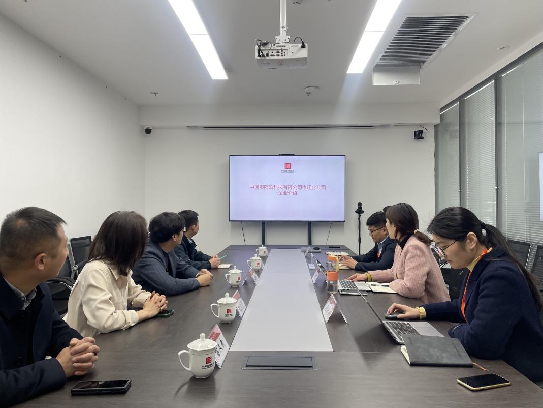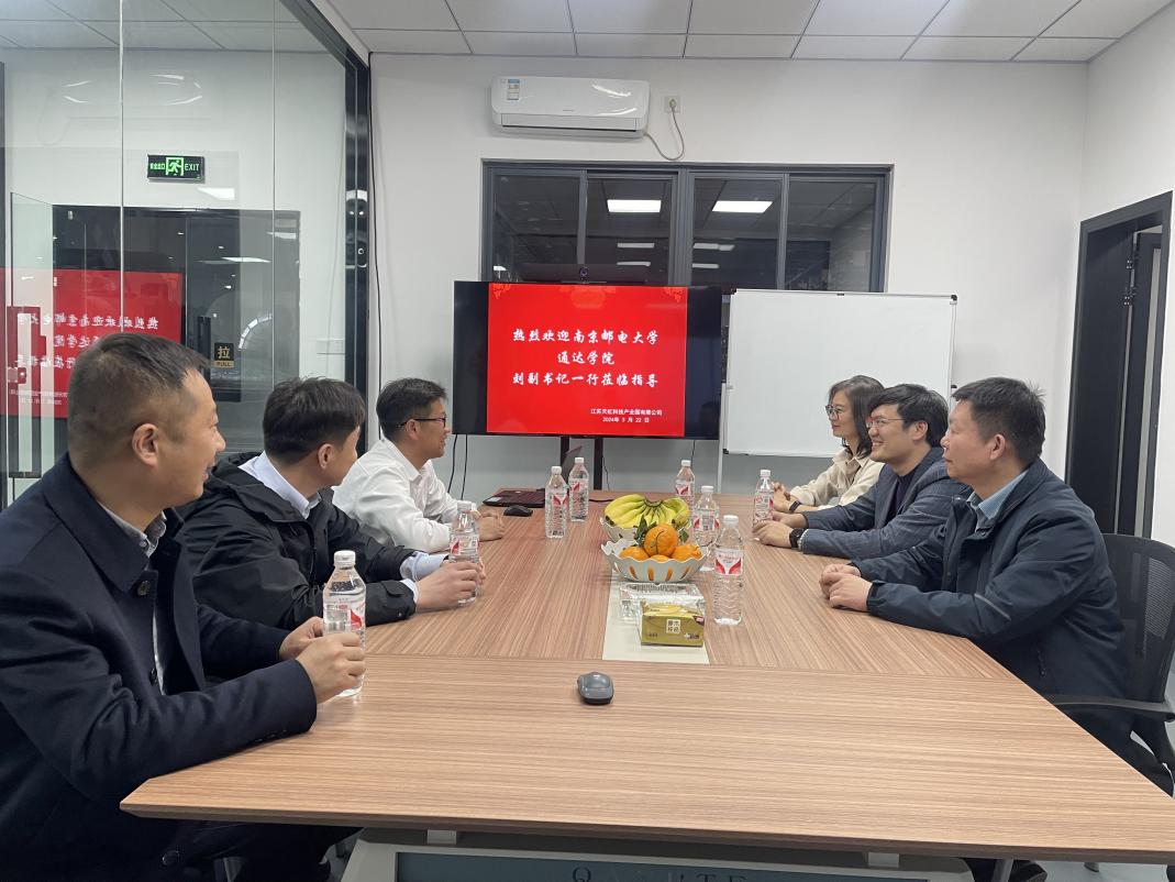 在中通服网盈科技有限公司宿迁分公司,刘伟副书记一行与企业进行座谈交流。双方就各自基本情况进行简要介绍,同时重点围绕学生培养、行业发展前景、实习生和毕业生的招聘需求及待遇等方面,进行深入探讨。