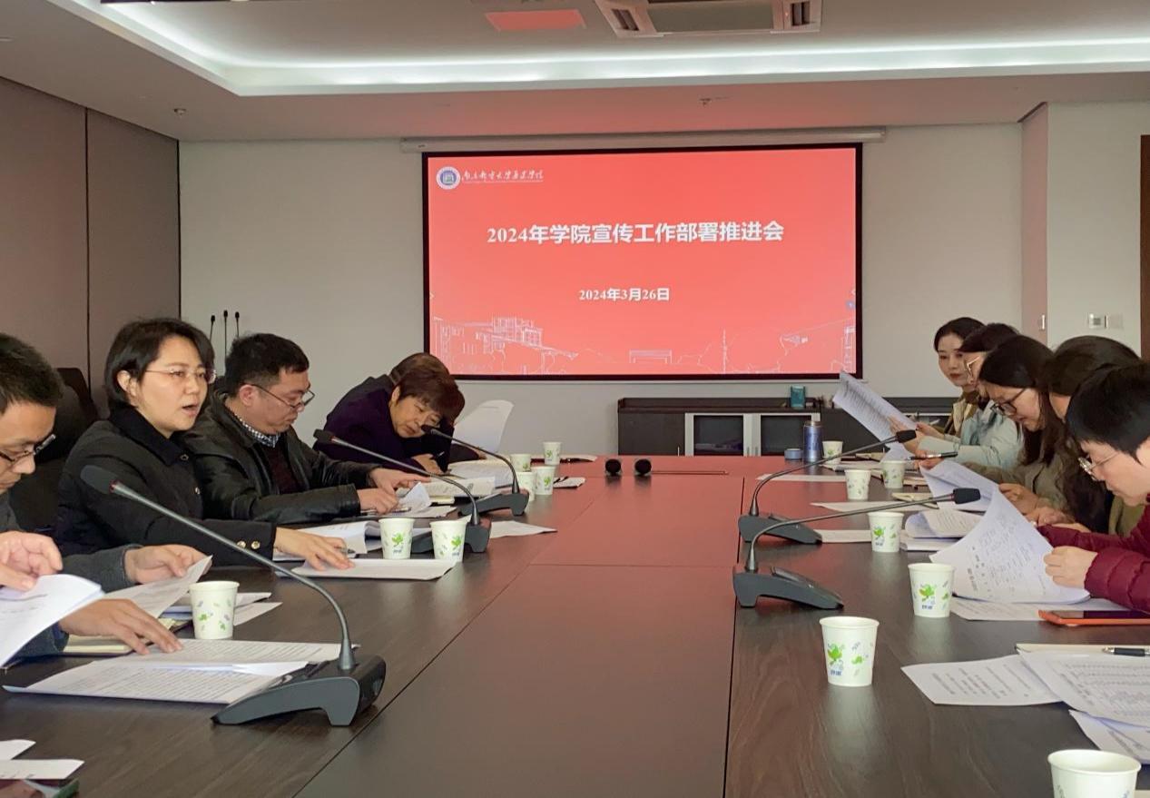 学习贯彻习近平文化思想是2024年学院宣传工作的一项重要政治任务。赵书记要求各部门、单位认真贯彻落实全省教育新闻宣传工作部署推进会精神,聚焦南邮2024年宣传工作要点,落实学院2024年宣传工作一揽子计划。她强调,一要创新传播手段和话语方式,弘扬主旋律,传播正能量;二要围绕中心工作,构建“大宣传”工作格局;三要站在全局和战略的高度,推动宣传思想工作和业务工作齐头并进;四要注重加强与主流媒体的联动宣传,最大限度提升宣传的效果和品质。她希望,全院上下自觉担负起新时代新的文化使命,举旗帜、聚民心、育新人、兴文化、展形象,为学院高质量发展提供坚强思想保证、强大精神力量、有力文化条件和和谐舆论支撑。