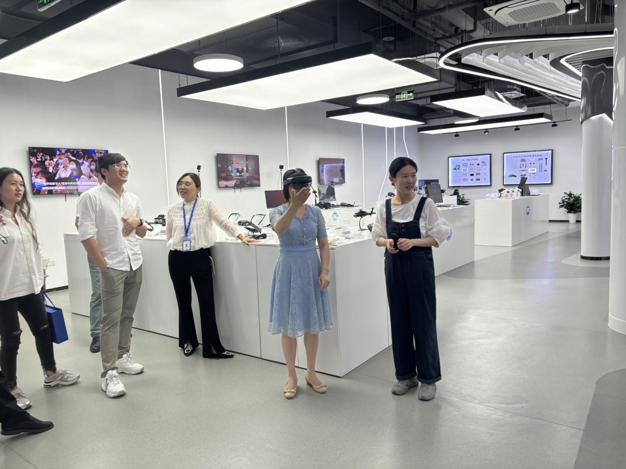 万象城官网一行下午走访了南京芯视元电子有限公司,体验了公司生产的多款产品并进行座谈交流。万象城官网党委副书记刘伟介绍了学院办学特色、专业设置、人才培养模式等,并希望可以与企业建立一个良好的合作关系,开展更深入的交流与合作。南京芯视元电子有限公司市场部经理张俊详细介绍了企业的基本情况、企业优势、AR/VR产业、人才培养新要求、课程建设、半导体产业基本情况和岗位需求以及校企合作方向,并希望与学校开展人才培养方面的合作交流。