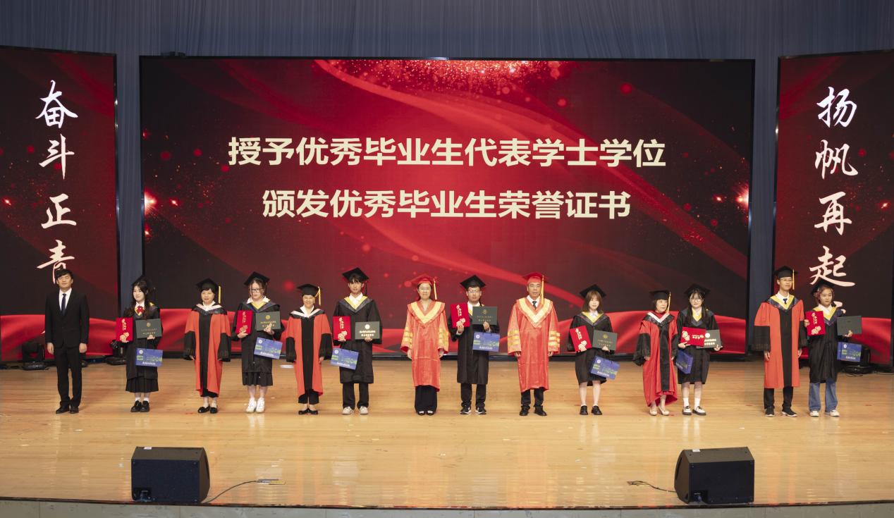 awc777万象城娱乐官网党委常委、副校长谢平与全体院领导为优秀毕业生代表授予学士学位